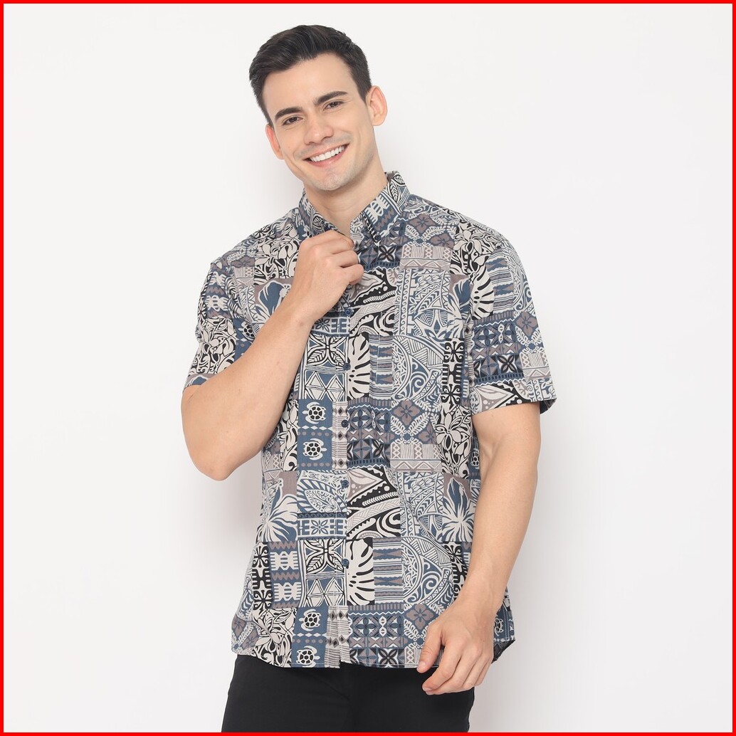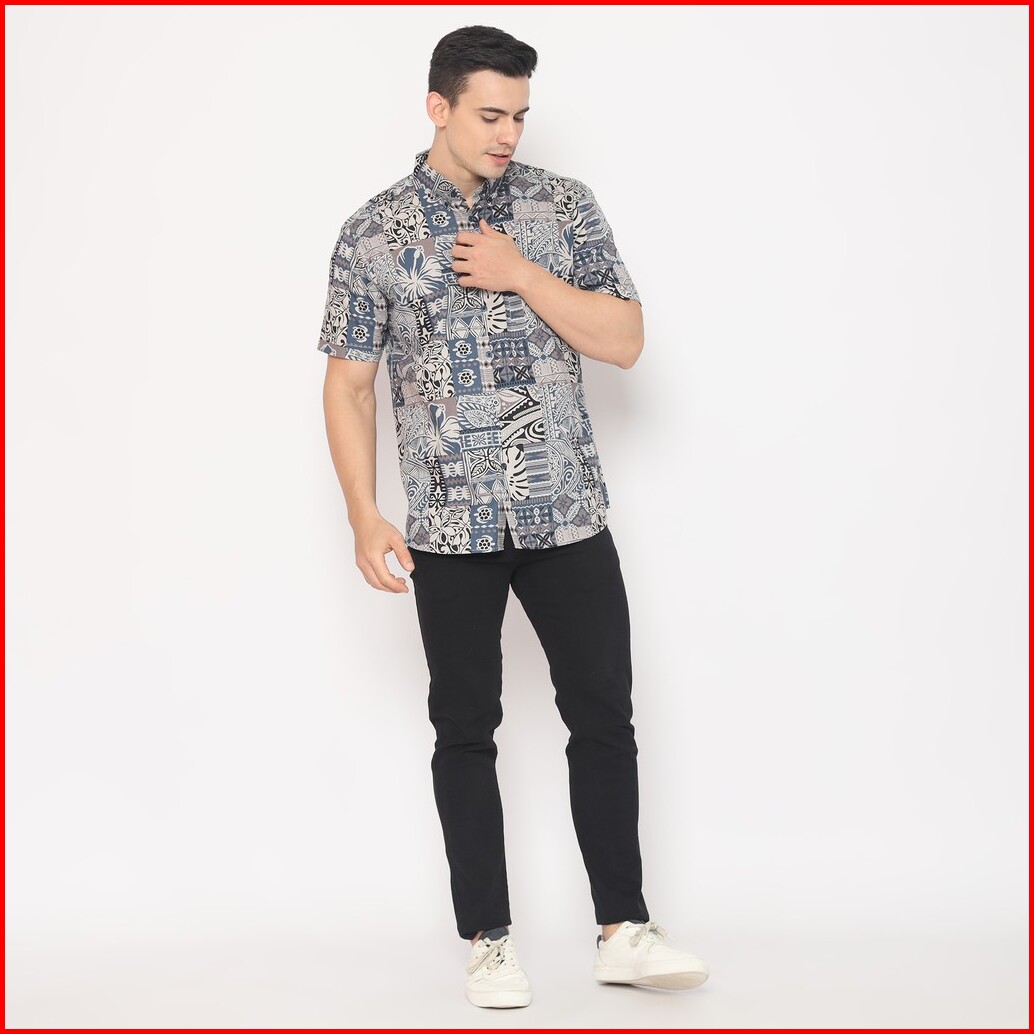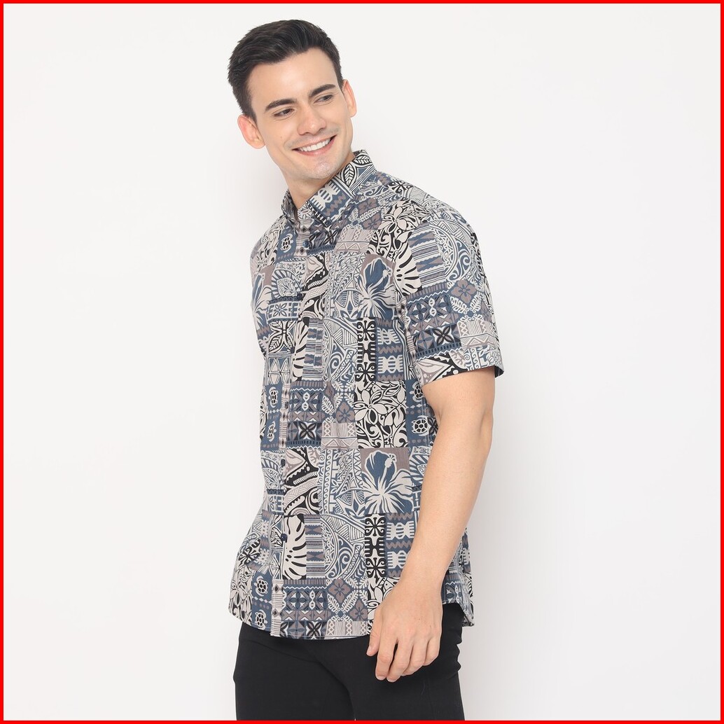 Platini Kemeja Hawai Pria Lengan Pendek Biru Abu 132106