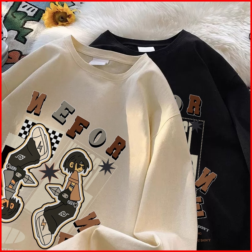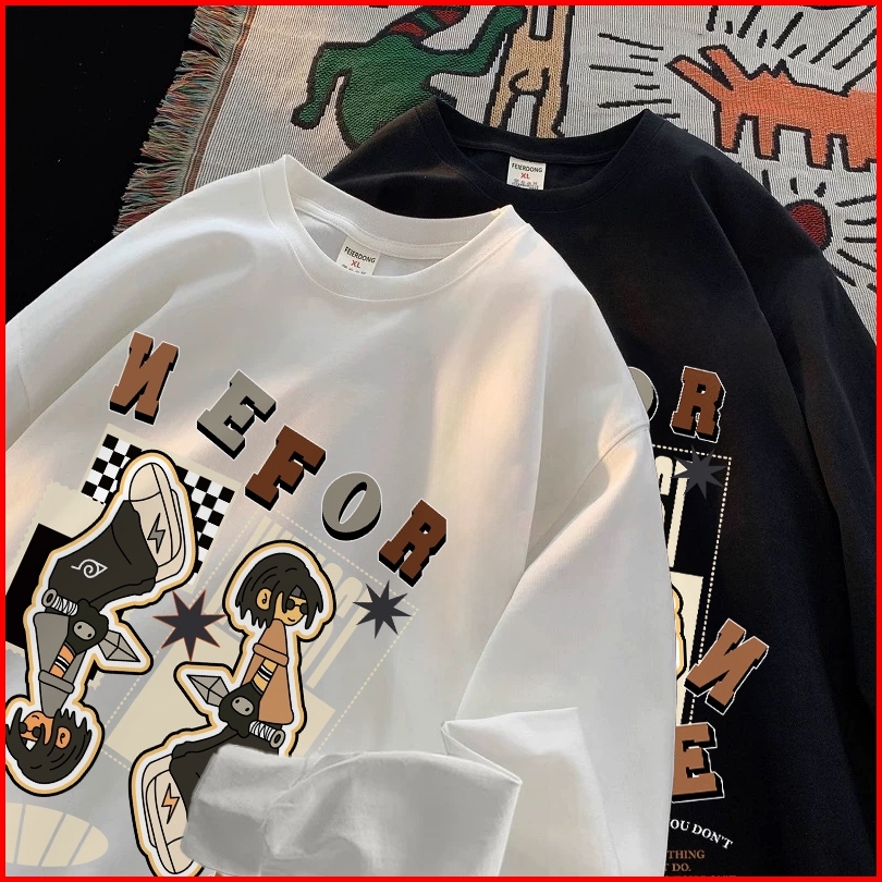 Forteid Atasan Kaos Wanita Oversize Lengan Panjang Korean Style Cetakan Carter Antik Impor T Shirt Hitam Tee Longsleeve