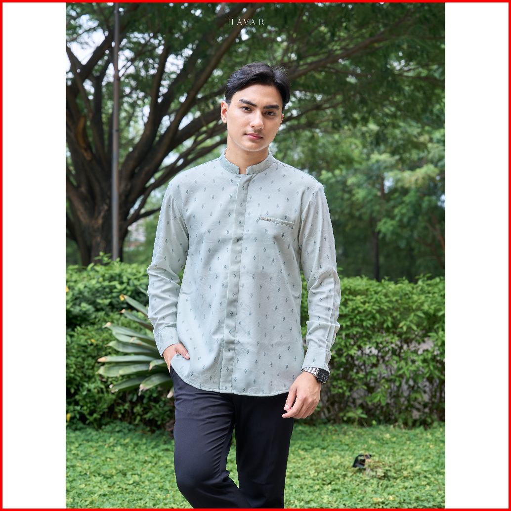 Havar Awwam Green Kemeja Koko Muslim Premium Slimfit Lengan Panjang