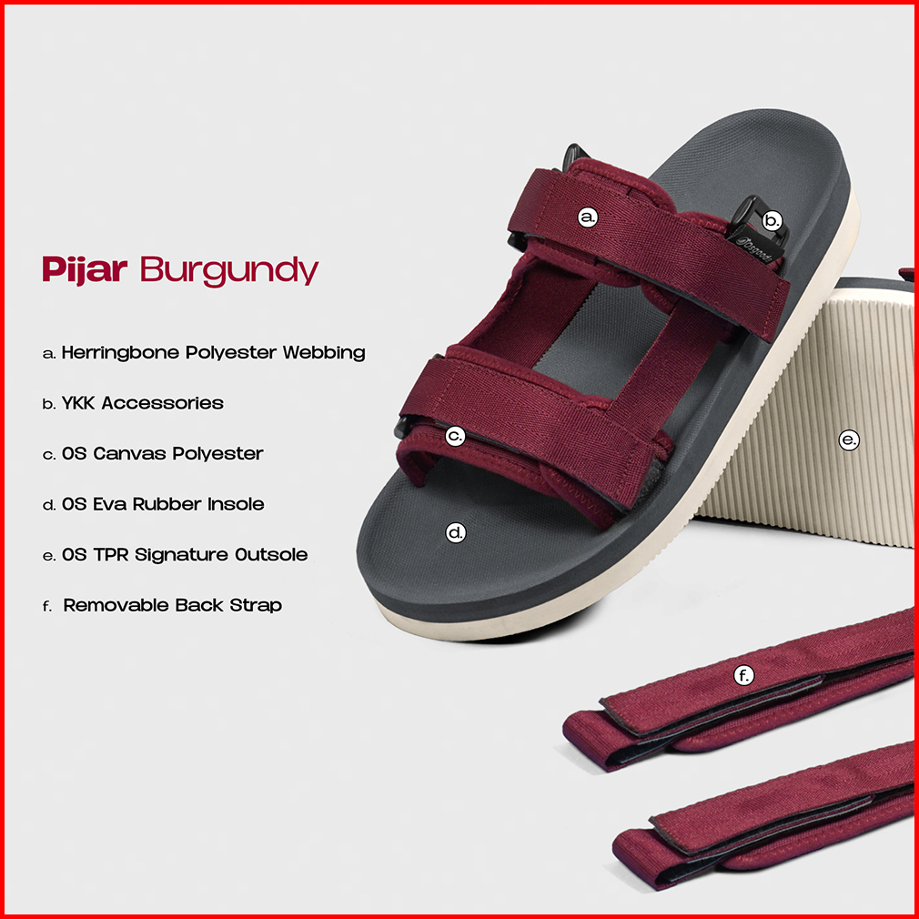 Osgood - Pijar Burgundy - Sandal Traveling Pria Wanita - Maroon