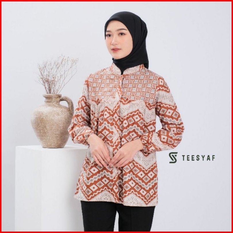 Teesyaf - Ba0-18 Batik Wanita Kerja Modern Formal Lengan Balon Motif Paving