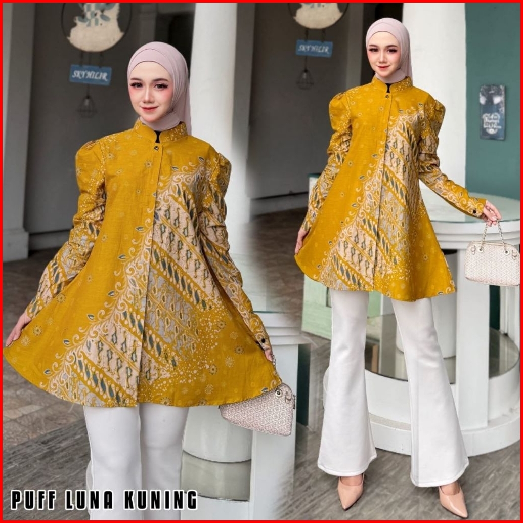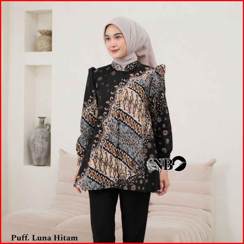 Batik Wanita Modern Lengan Panjang Puff Motif Luna Faeybtk