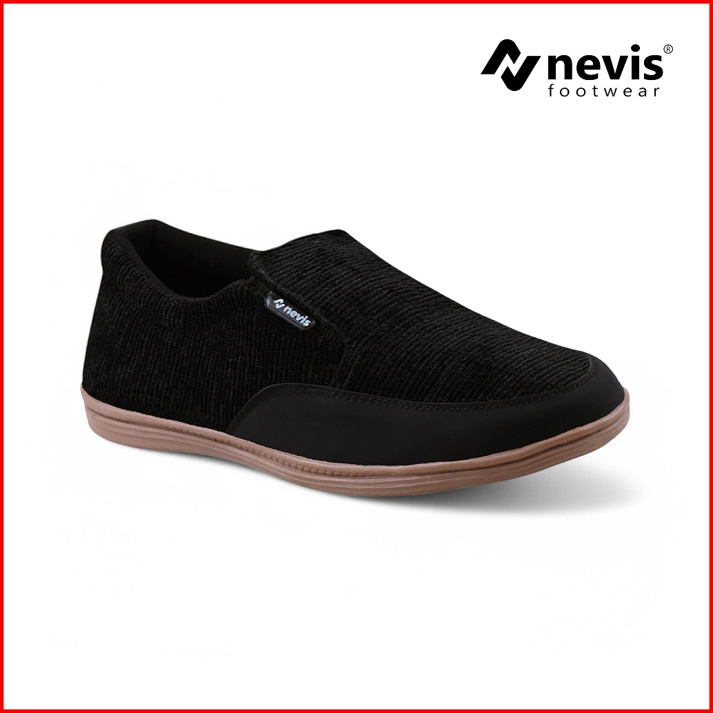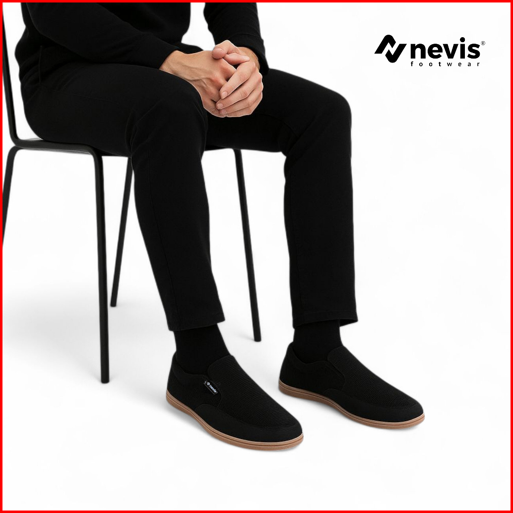 Nevis Nvs 02 - Sepatu Slip On Pria Slop Casual Formal Kerja Sekolah Hitam