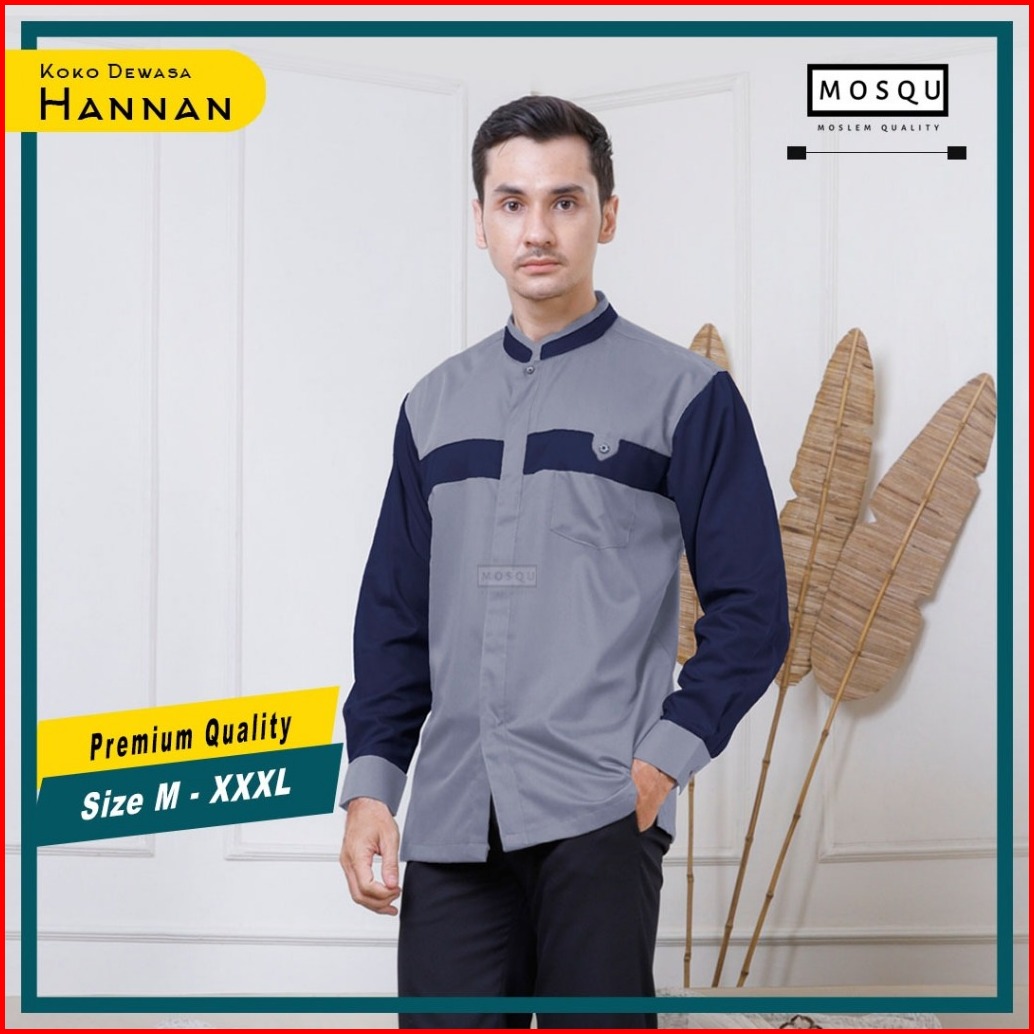 Mosqu Hannan Baju Koko Pria Lengan Panjang Kerah Shanghai Size S - Xxxl