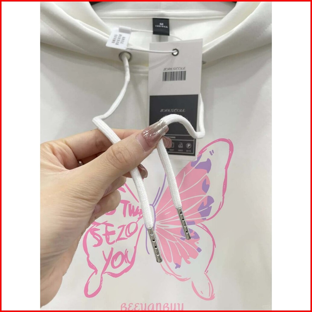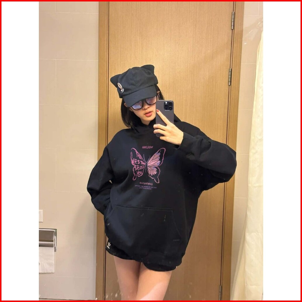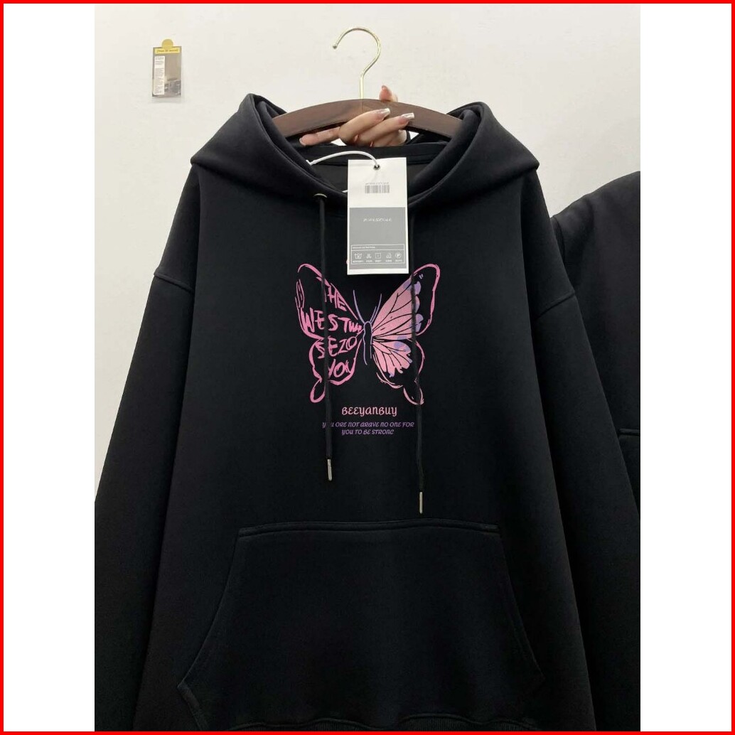 Forteid Hoodie Sweater Wanita Oversize Hoodie Cetakan Kupu-kupu Merah Muda Lucu Korean Style Baju Wanita Kekinian Baju W