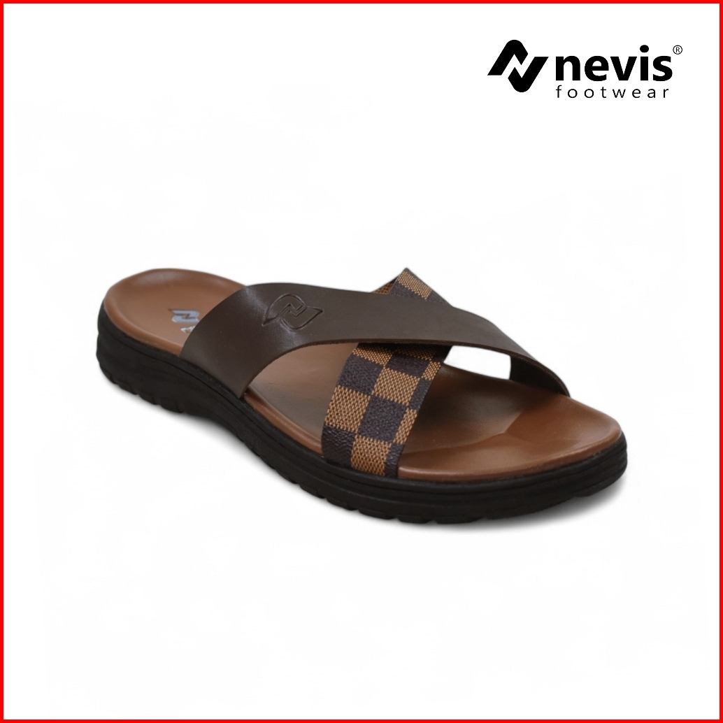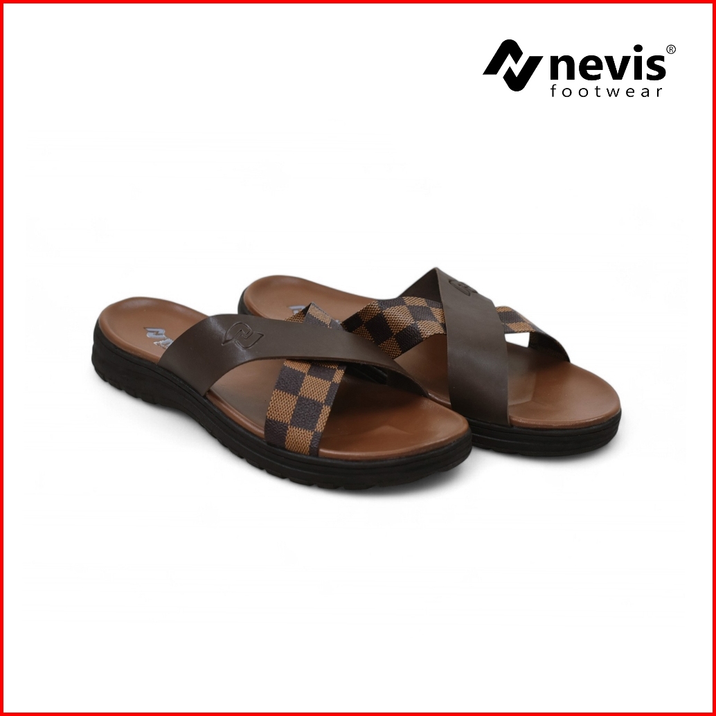 Nevis Sandal Pria Casual Mauro Model Silang Sendal Kulit Slop Selop Slide