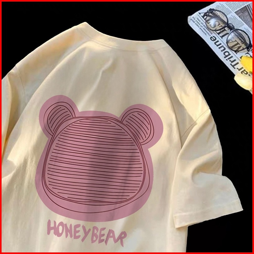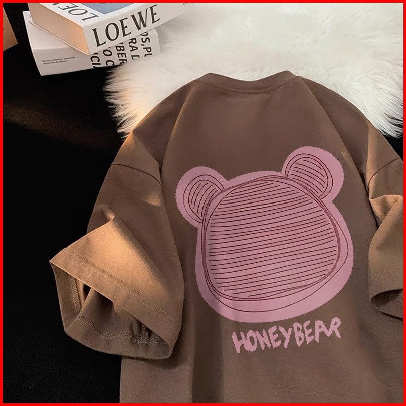 Forteid T-shirt Washed Oversize Beruang Lucu Berwarna Merah Muda Lucu Baju Atasan Lengan Pendek Wanita Kaos Oversize Ter