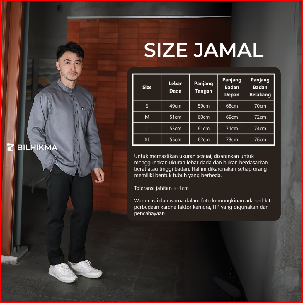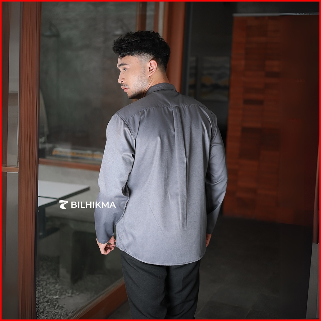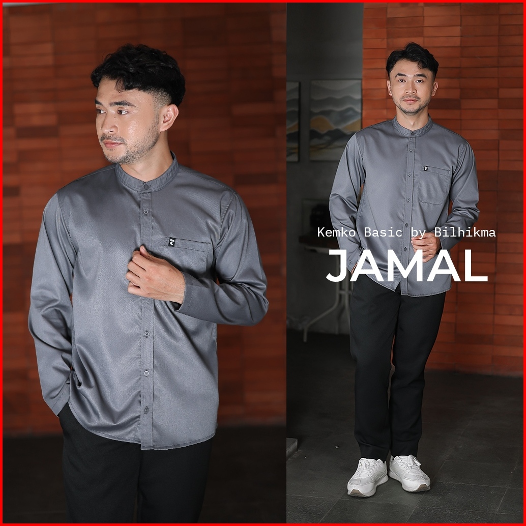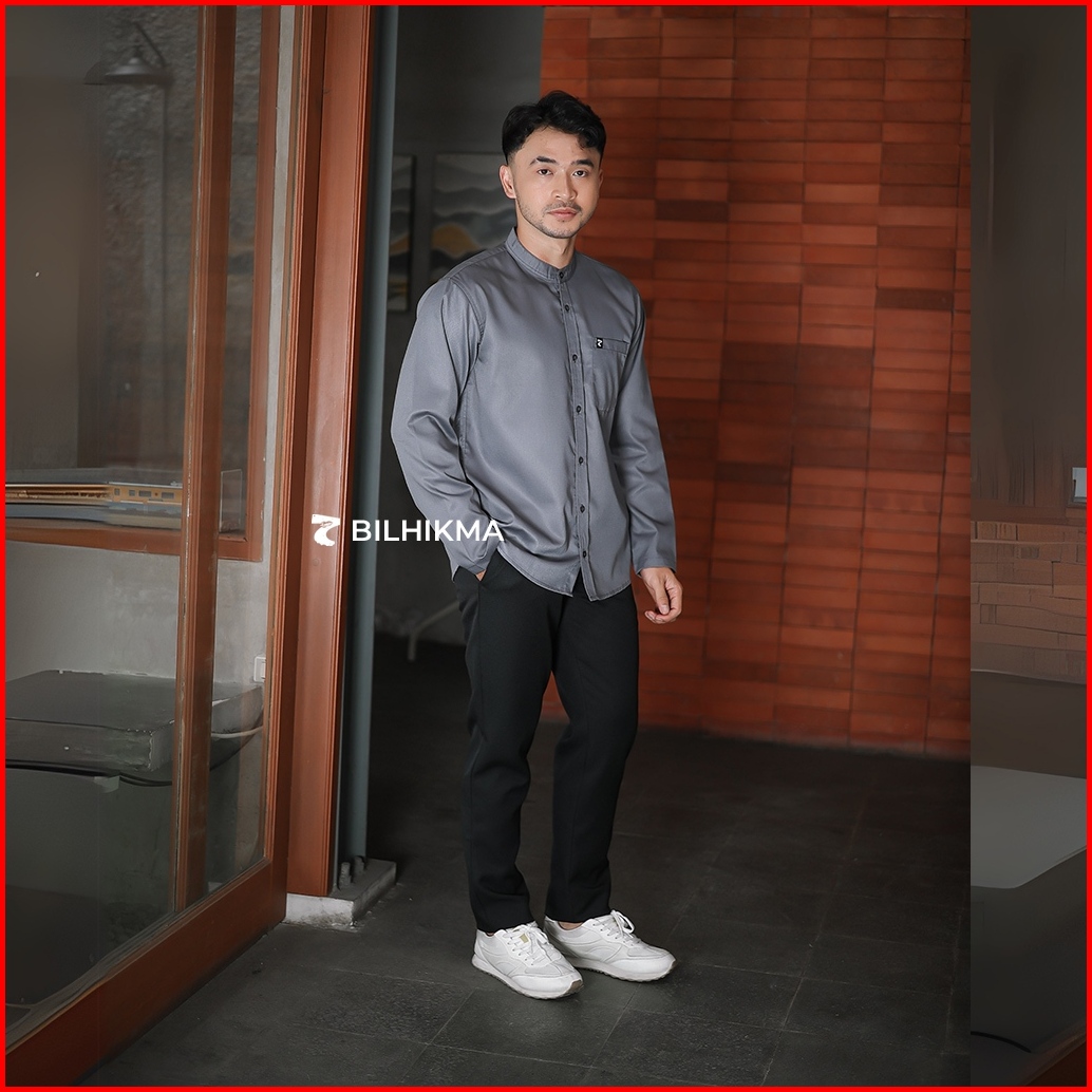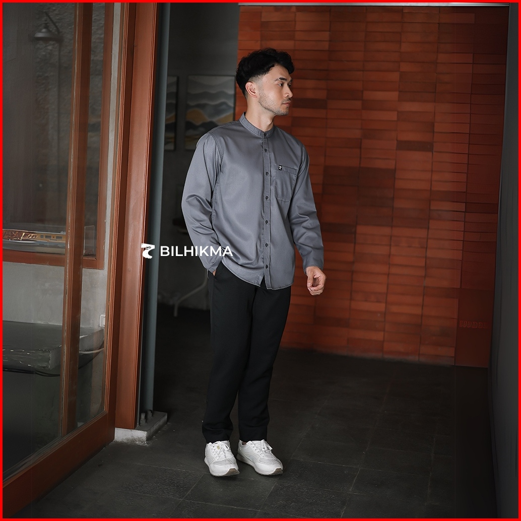 Bilhikma Baju Kemeja Koko Lengan Panjang Remaja Dan Pria Dewasa Kemko Jamal Warna Abu Dark Grey