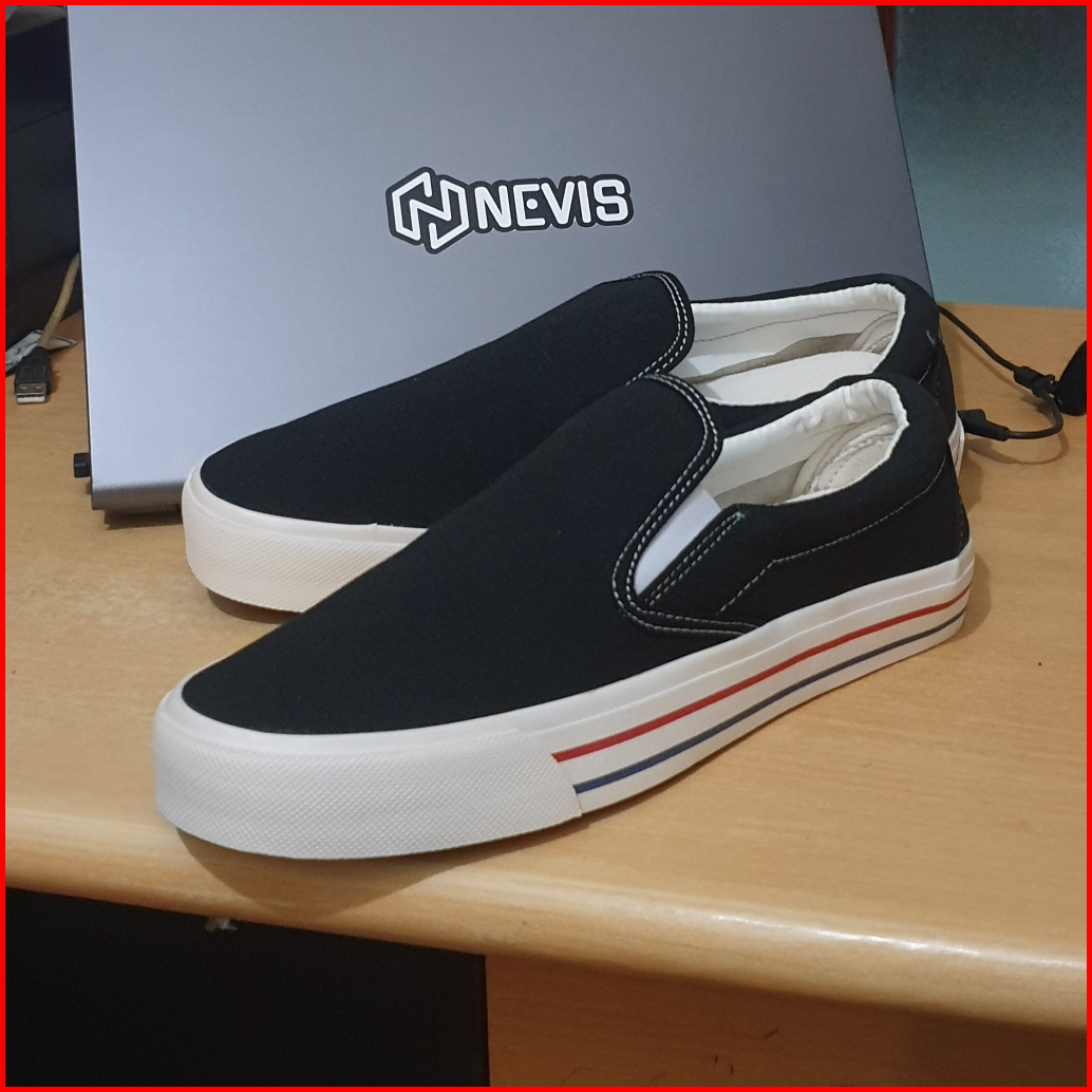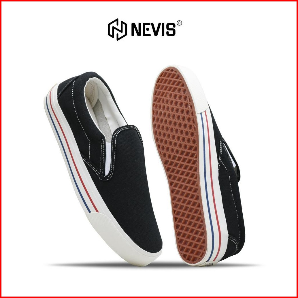 Nevis Sepatu Slip On Casual Pria Wanita Retro Black White