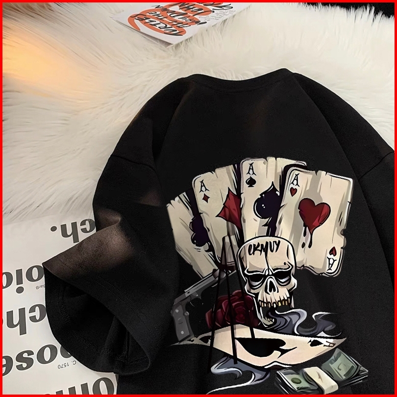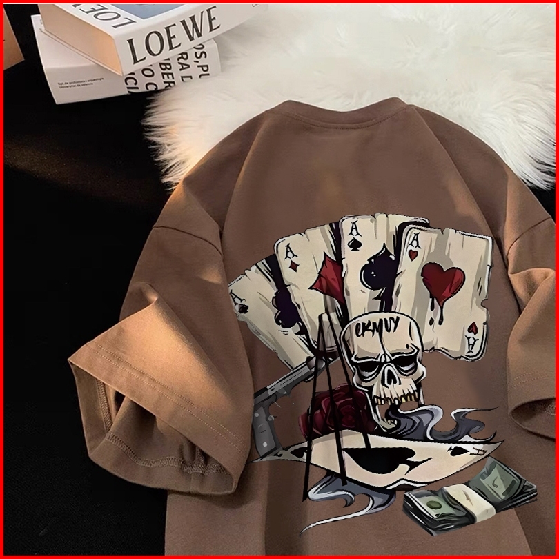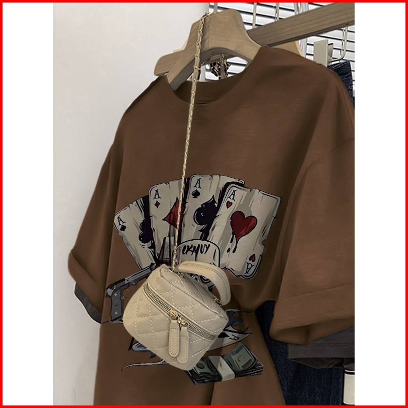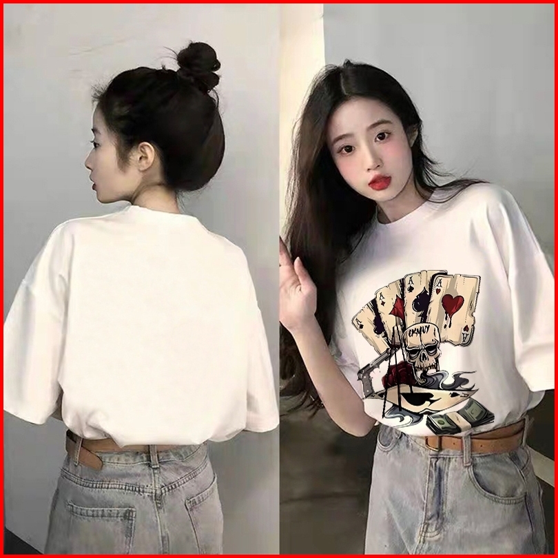 Forteid Cetakan Poker Trendi Tshirt Kekinian Korean Style Kaos Oversize Wanita Baju Atasan Wanita Terbaru 100 Cotton