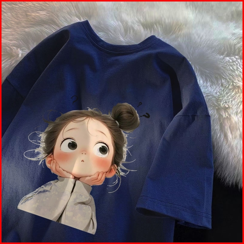 Forteid Biru Laut T-shirt Lengan Pendek Baju Kaos Oversize Wanita Baju Kaus Wanita Korea Baju Atasan Wanita Terbaru Pola