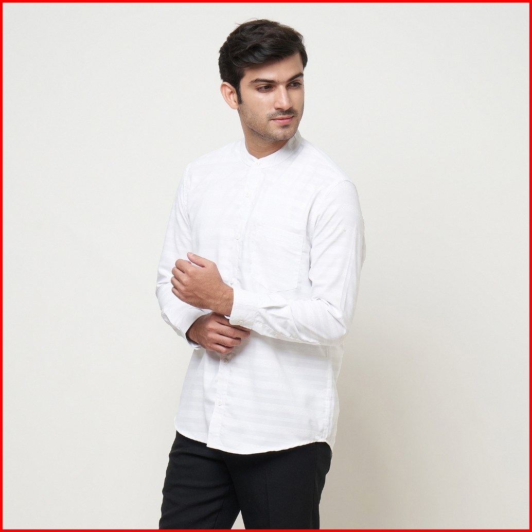 Vanfive Kemeja Pria Koko Kemko Salur Stripe Lengan Panjang Arhan Putih