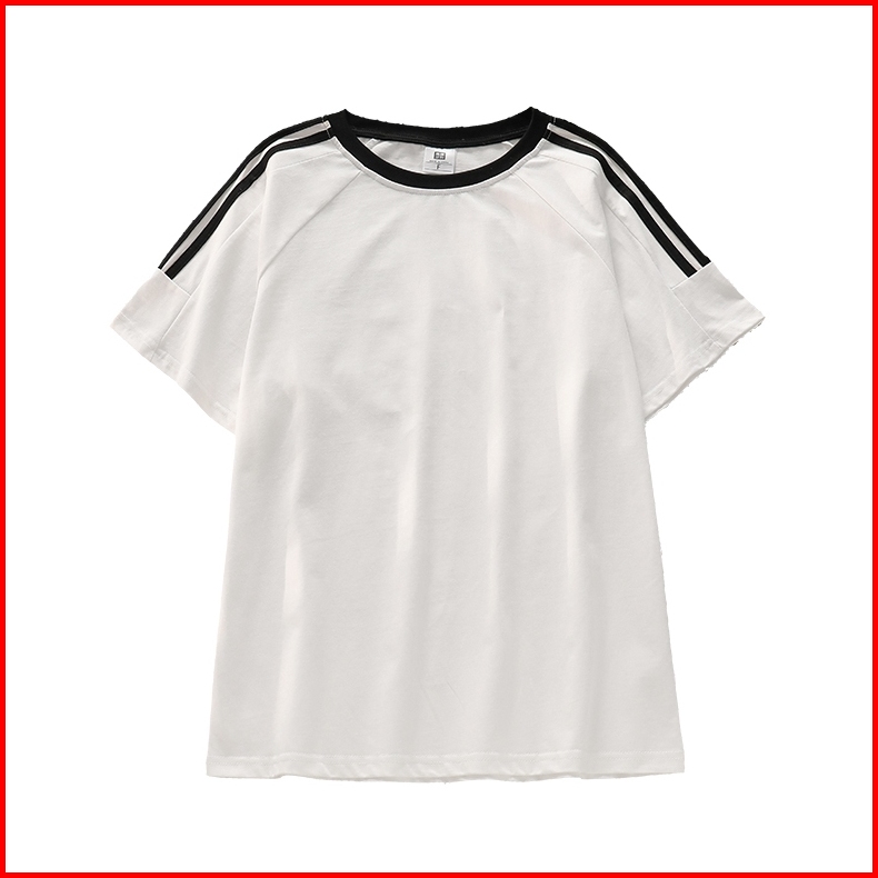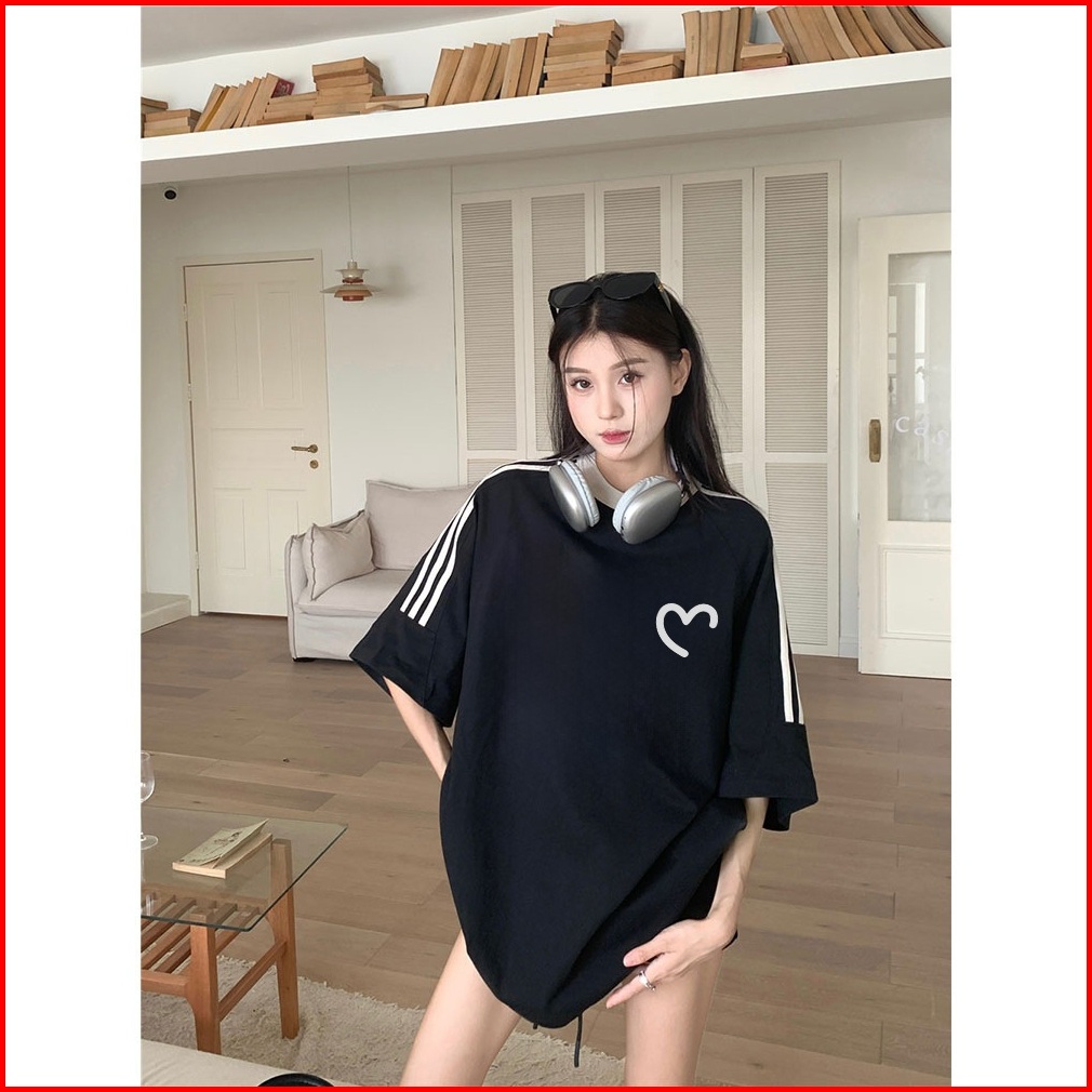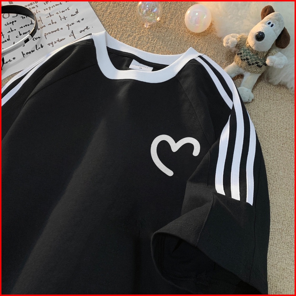 Forteid Cetakan Merek Trendi Retro Baju Oversize Polos Garis Putih Bentuk Hati Korean Style Kaos Longgar Baju 17 Agustus