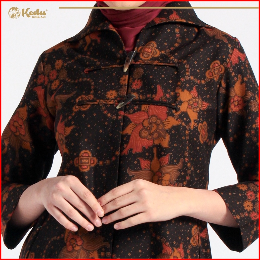 Kedu Batik - Tunik Batik Katun Gading Dayat Hitam Tunik Wanita Formal