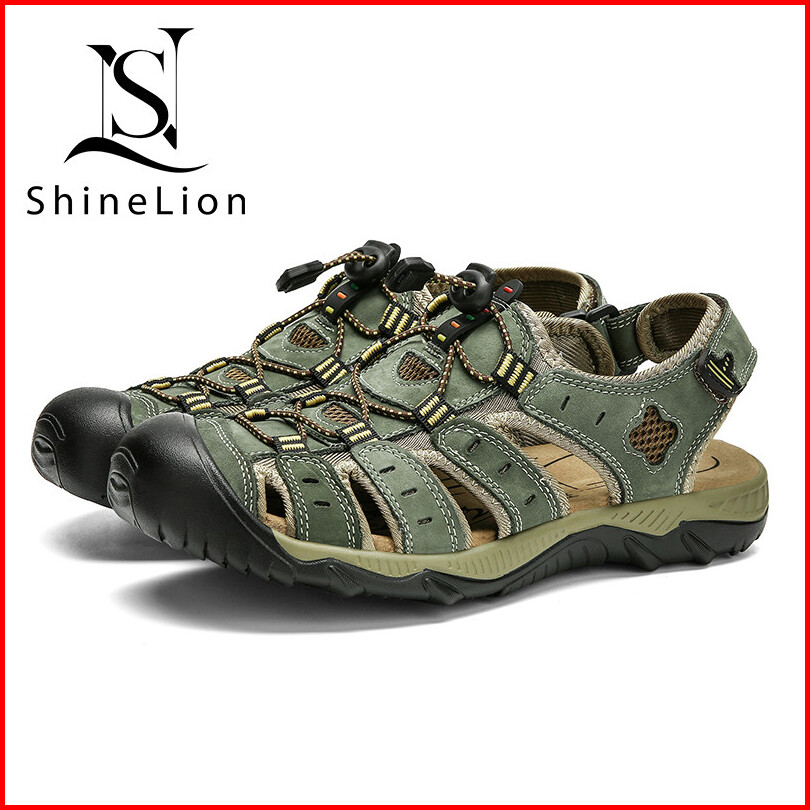 Shinelion Kp-2026 Sendal Gunung Pria 100 Kulit Asli Ringan Bernapas Anti Slip Tahan Aus Terbaru 2025 Pantai Outdoor Spor