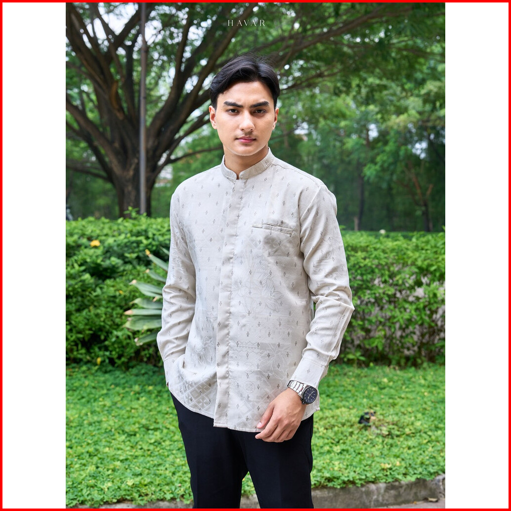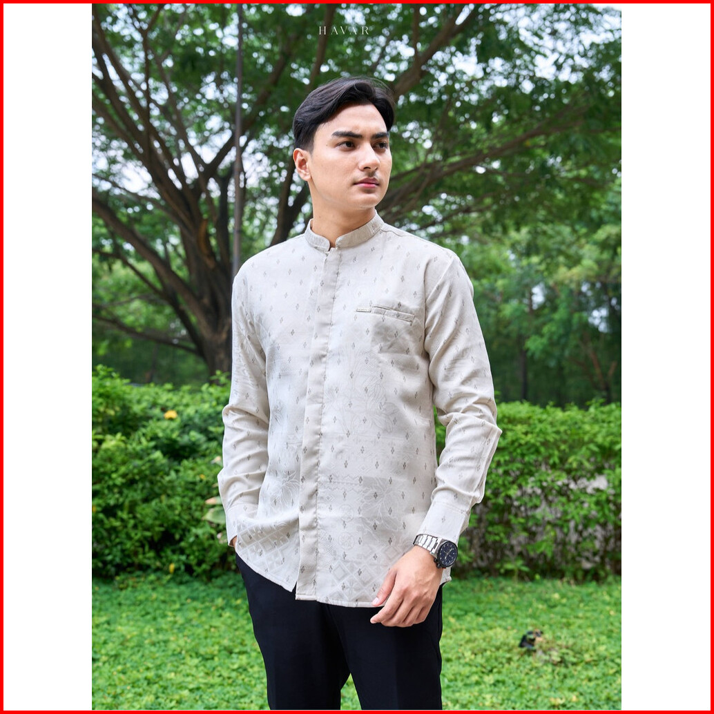 Laskala X Havar Awwam Cream Kemeja Koko Muslim Premium Slimfit Lengan Panjang