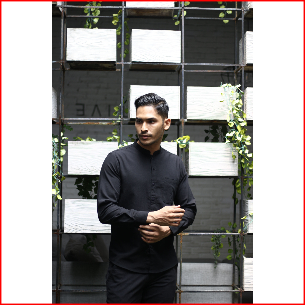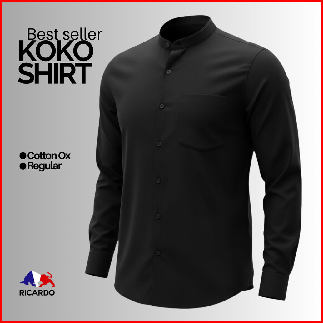 Ricardo Baju Koko Hitam Polos Pria Lengan Panjang 32410