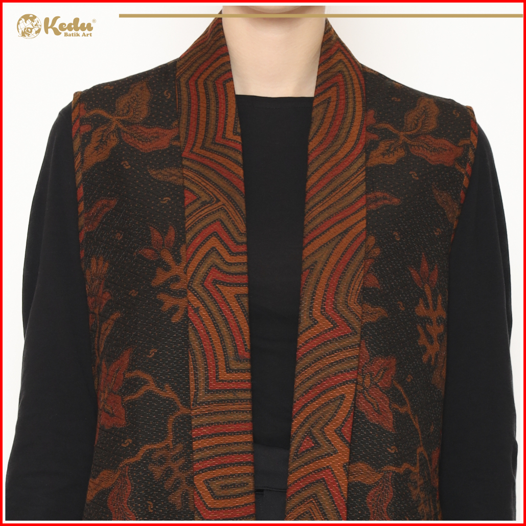 Kedu Batik - Outer Batik Dobby Tanpa Lengan Sotong Hitam Outer Wanita Formal
