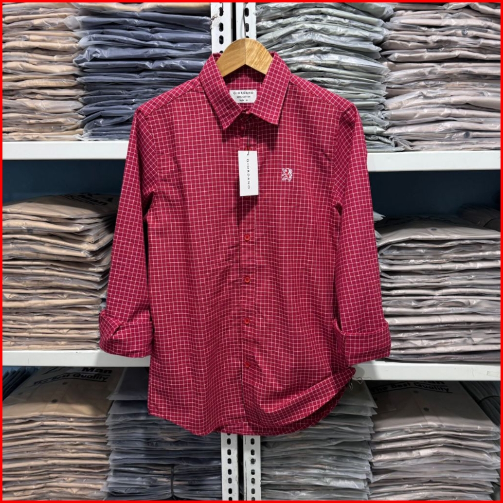 Kemeja Giordano Kotak Hitam Lengan Panjang Kemeja Oxford Giordano Kemeja Flanel Kemeja Pria Slimfit