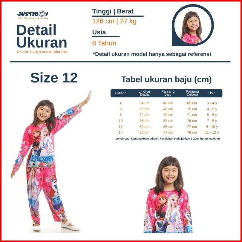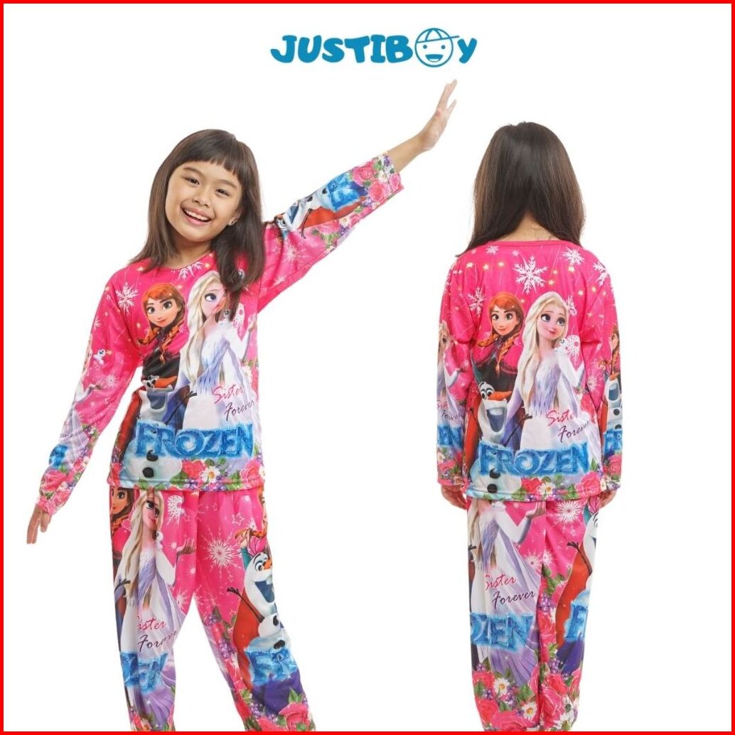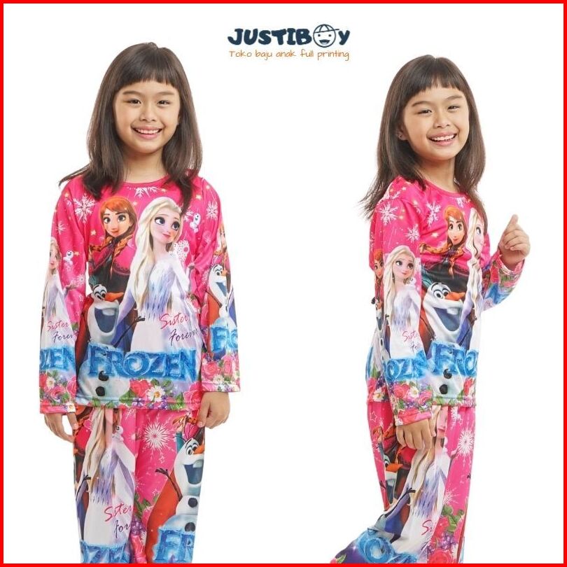 Baju Piyama Anak Perempuan Motif Princess Frozen Elsa Lengan Panjang 3 - 12 Tahun