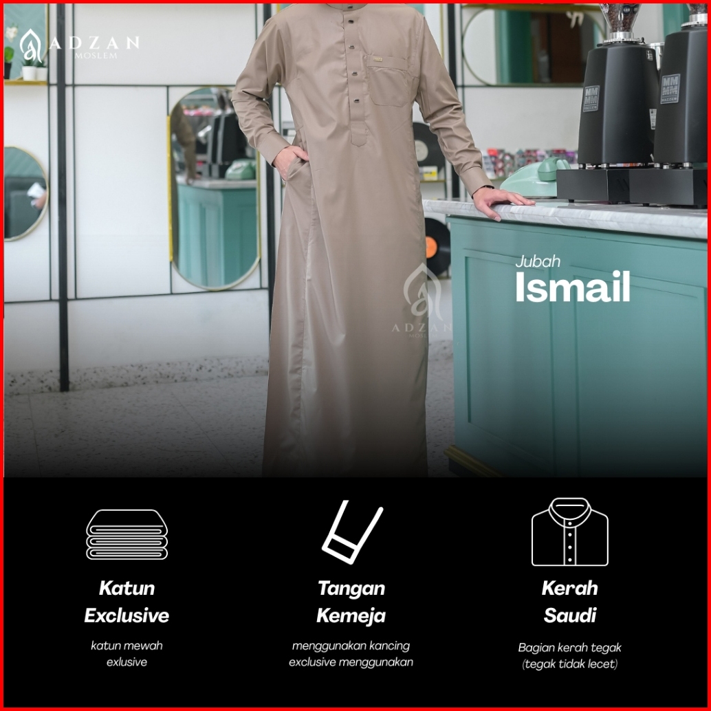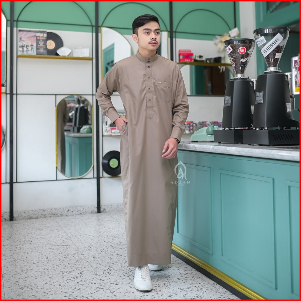 Adzan Moslem - Jubah Gamis Thobe Slimfit Pria Ismail Warna Mocca