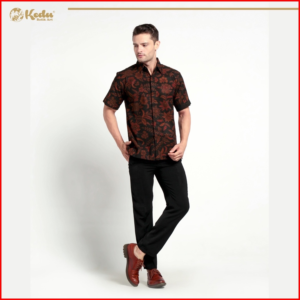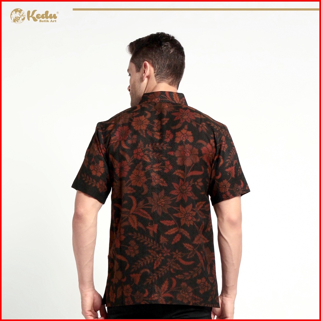 Kedu Batik - Kemeja Batik Dobby Lengan Pendek Kembang Pari Hitam Hem Pria Formal
