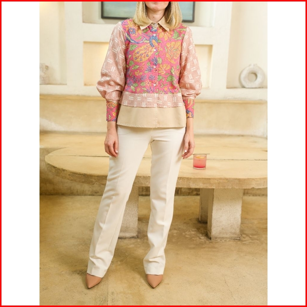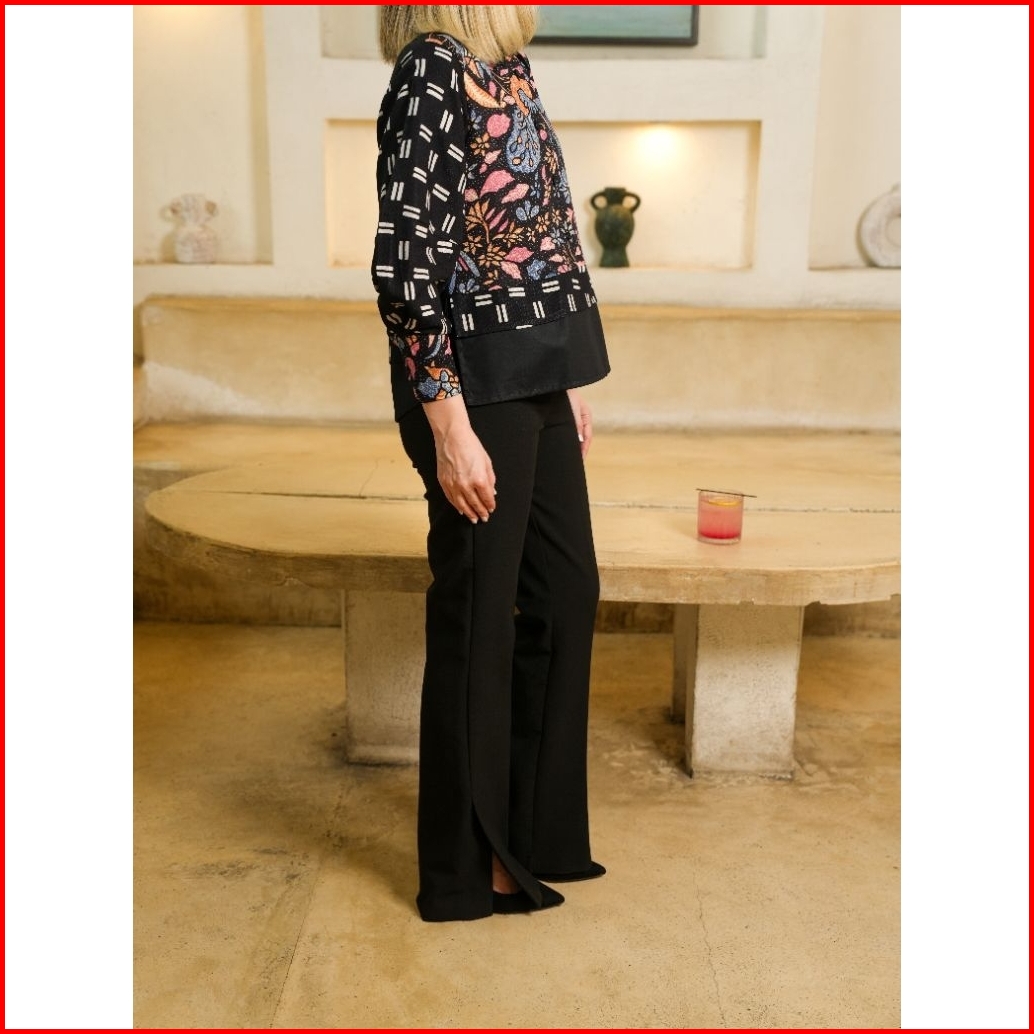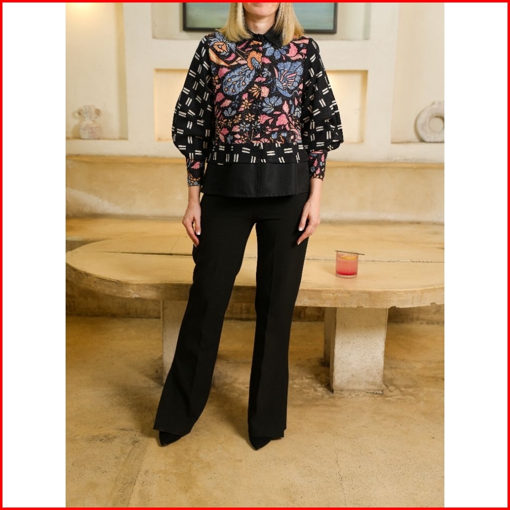 Blouse Atasan Casual G3 Batik Hitam Dan Cream New Crop