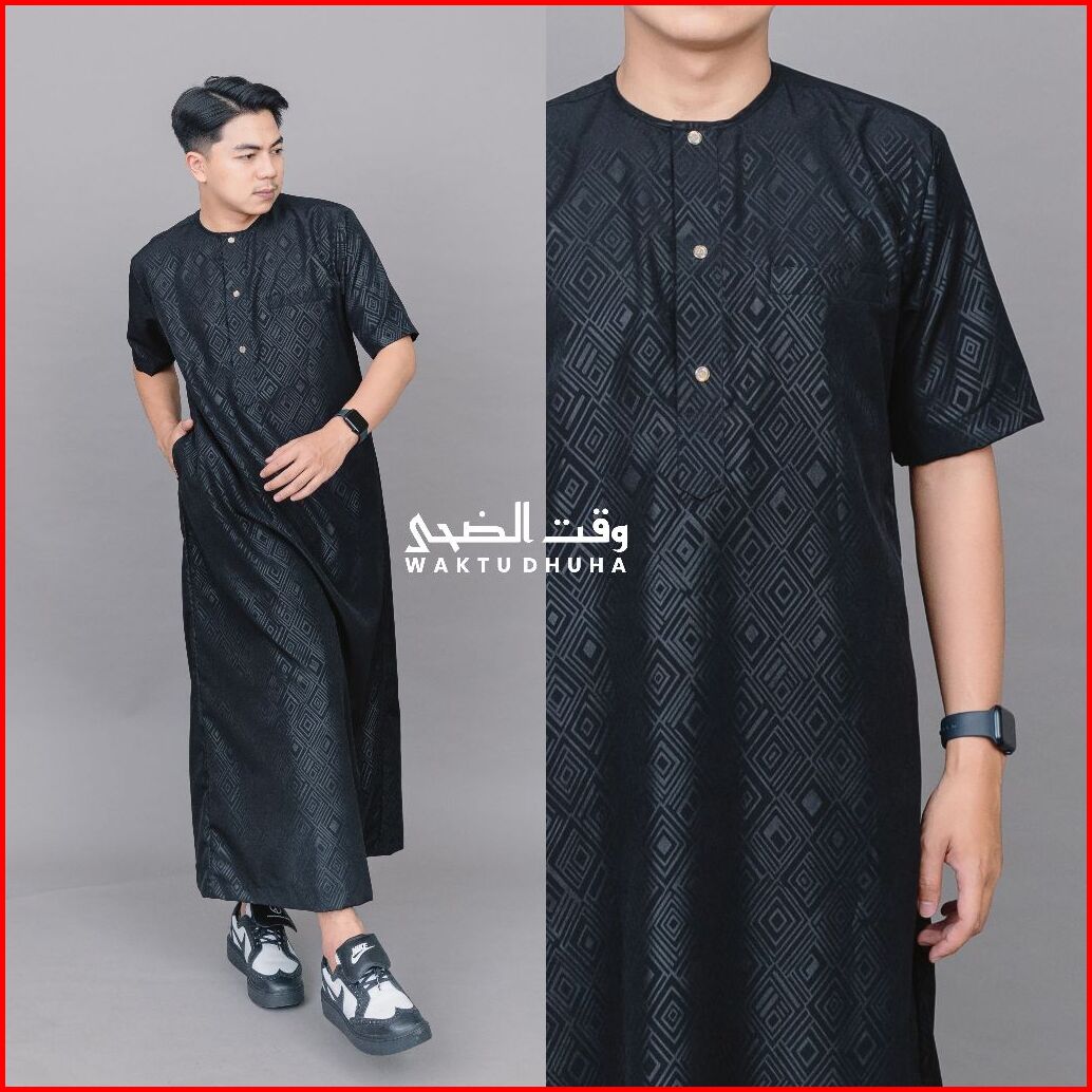 Waktu Dhuha - Jubah Azwar Gamis Pria Slimfit Lengan Pendek Motif Embos