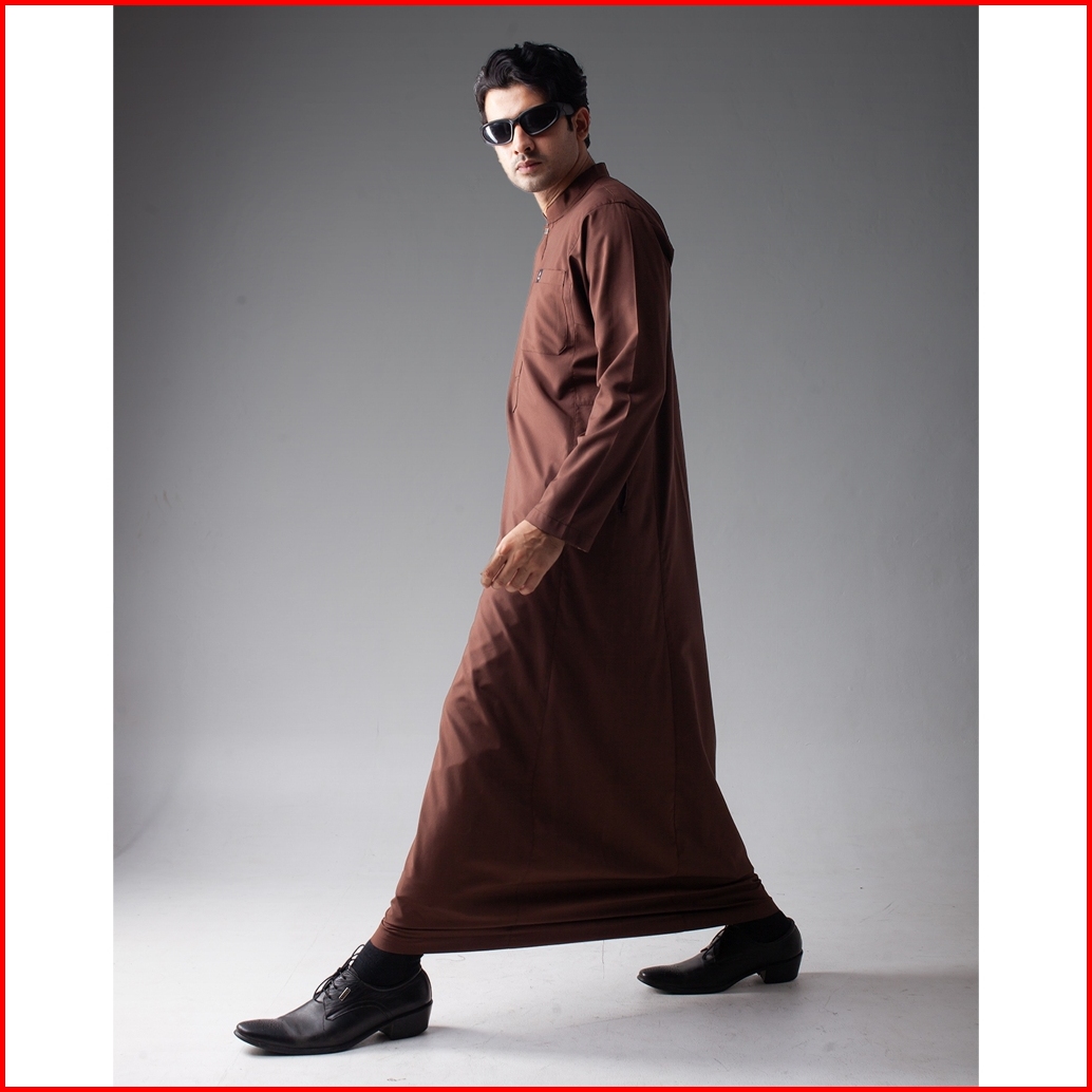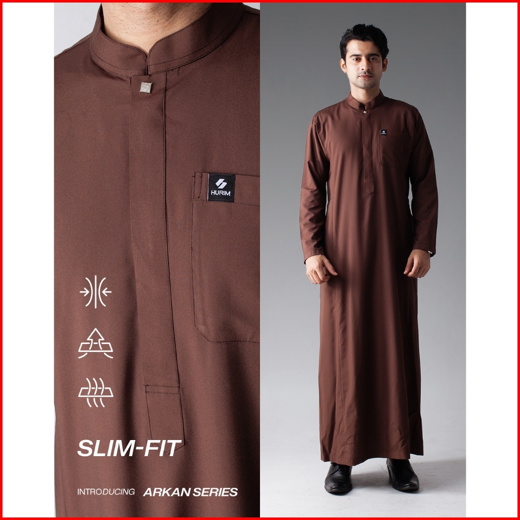 Jubah Pria Lengan Panjang Slim Fit Arkan Series Warna Coklat By Hurim