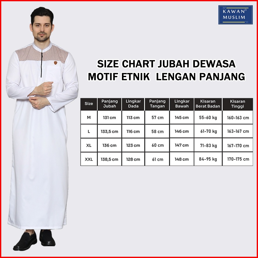 Kawan Muslim - Jubah Gamis Pria Motif Etnik Lengan Panjang Katun Toyobo Premium Baju Muslim Dewasa
