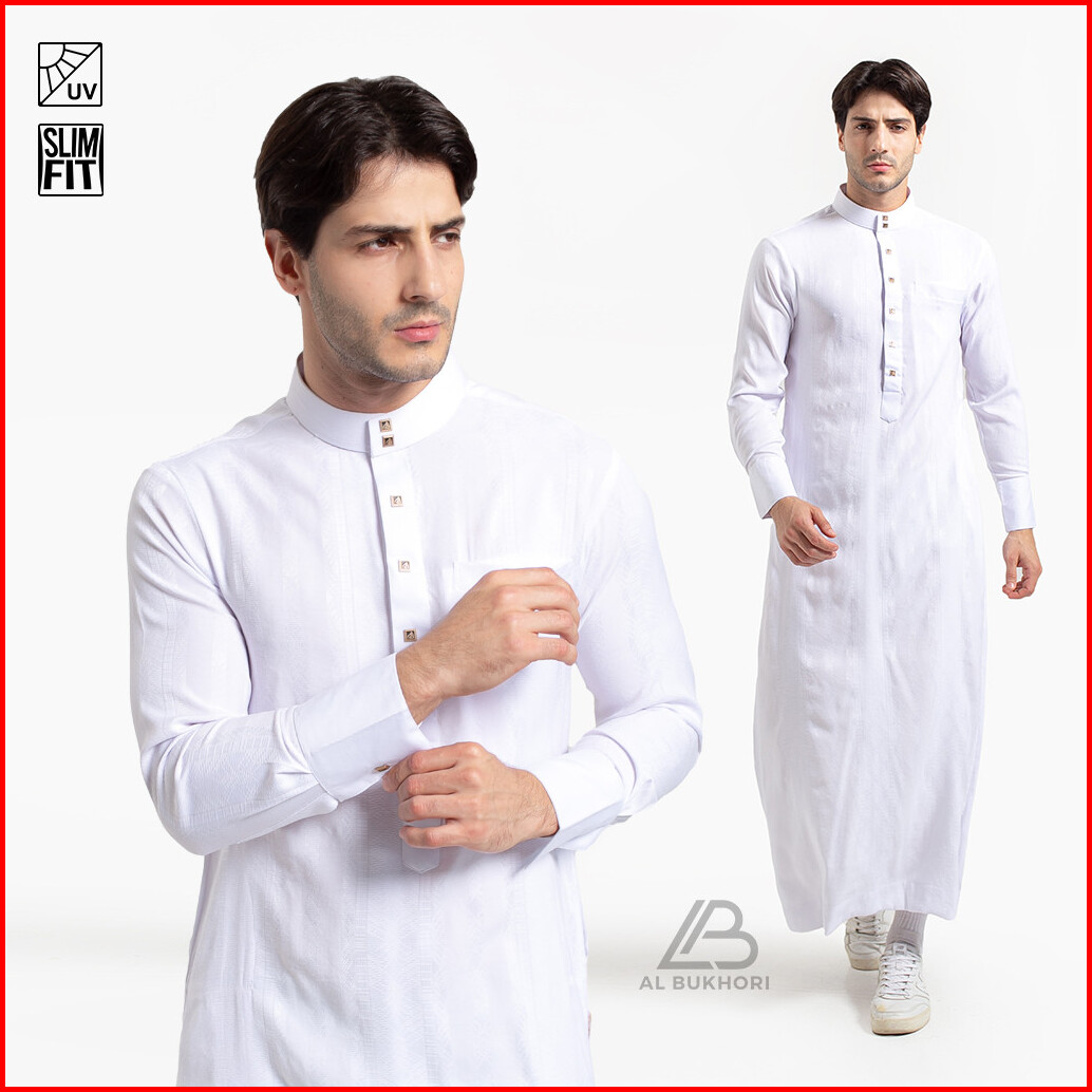 Al Bukhori - Songket Anti Uv Jubah Gamis Thobe Slimfit Pria Dewasa Premium Lengan Panjang - Jubah Umair