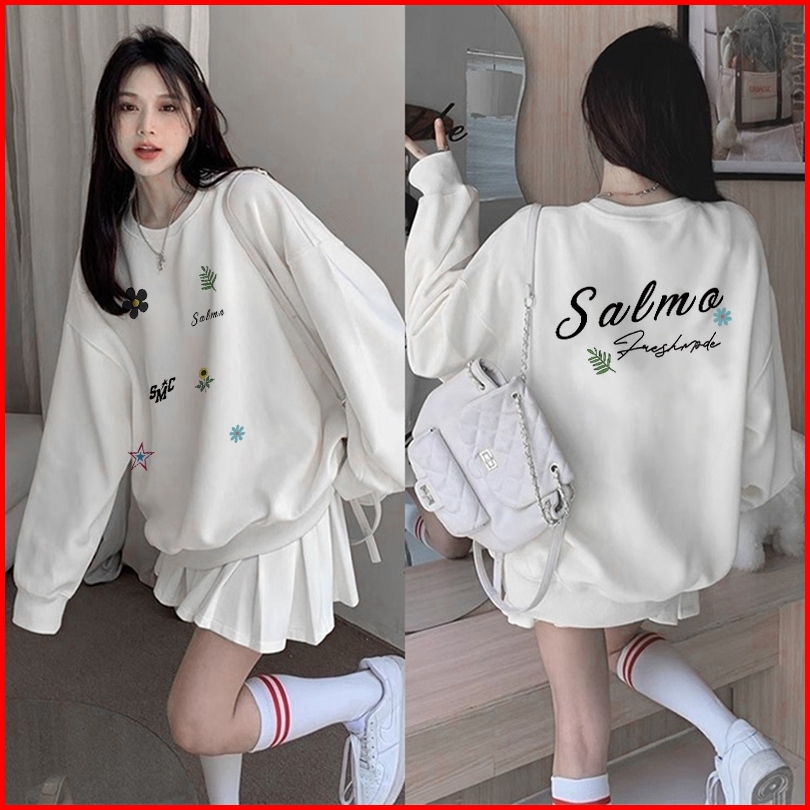 Sweater Oversize Wanita Lengan Panjang Versi Korea Cute Little Flower Letter Print Baju Sweater Wanita Korean Style Lett