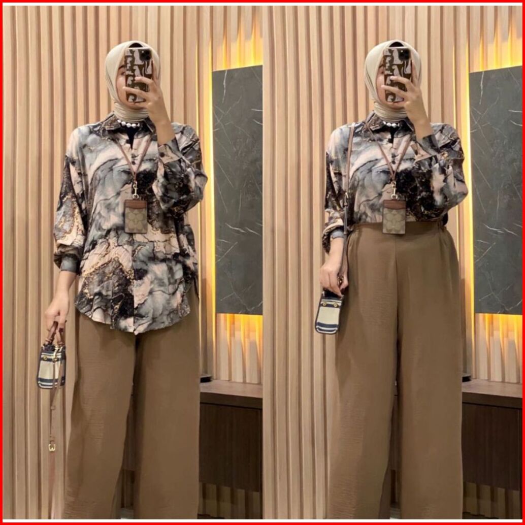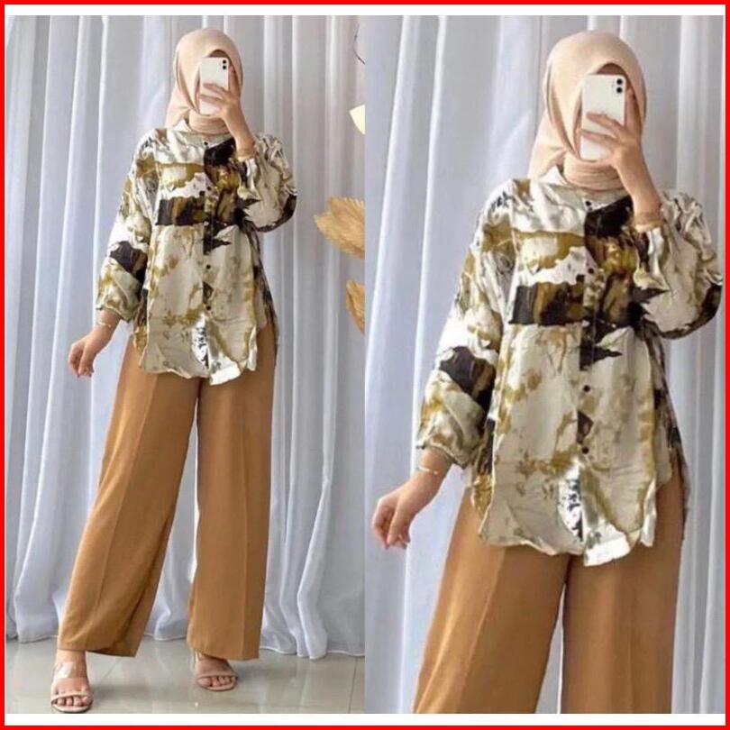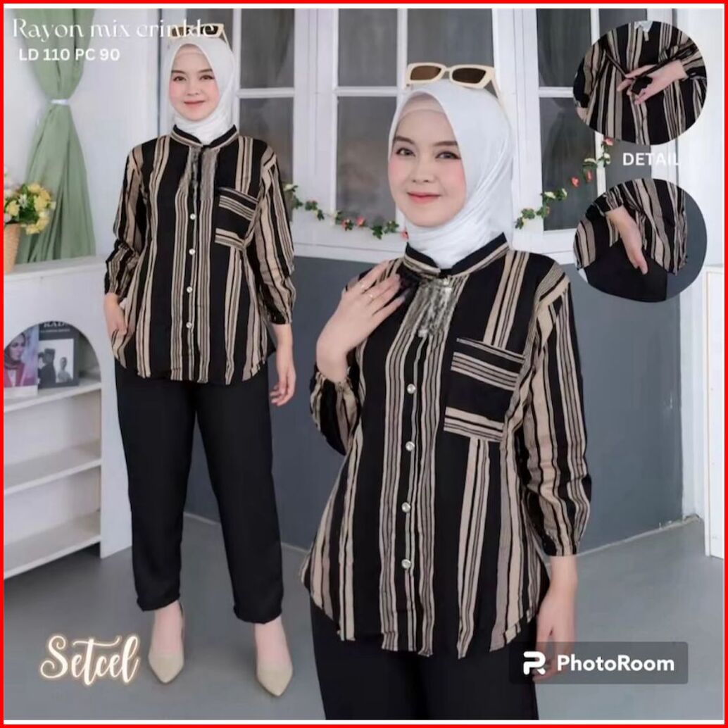 Setelan Wanita Lengan Panjang Bahan Rayon Crinkle Premium - One Set Crinkle Motif