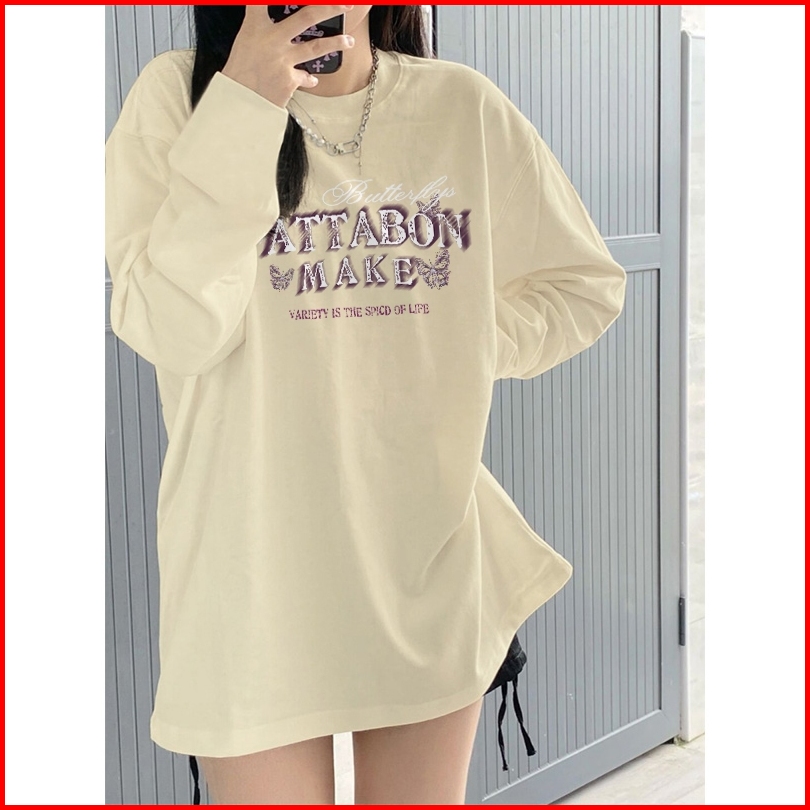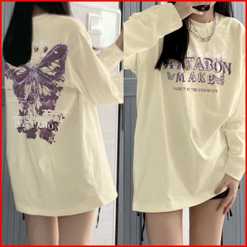 Kaos Oversize Lengan Panjang Wanita Ngengat Retro Korean Style Baju Kaos Lengan Panjang Wanita Terbaru Kekinian Atasan T