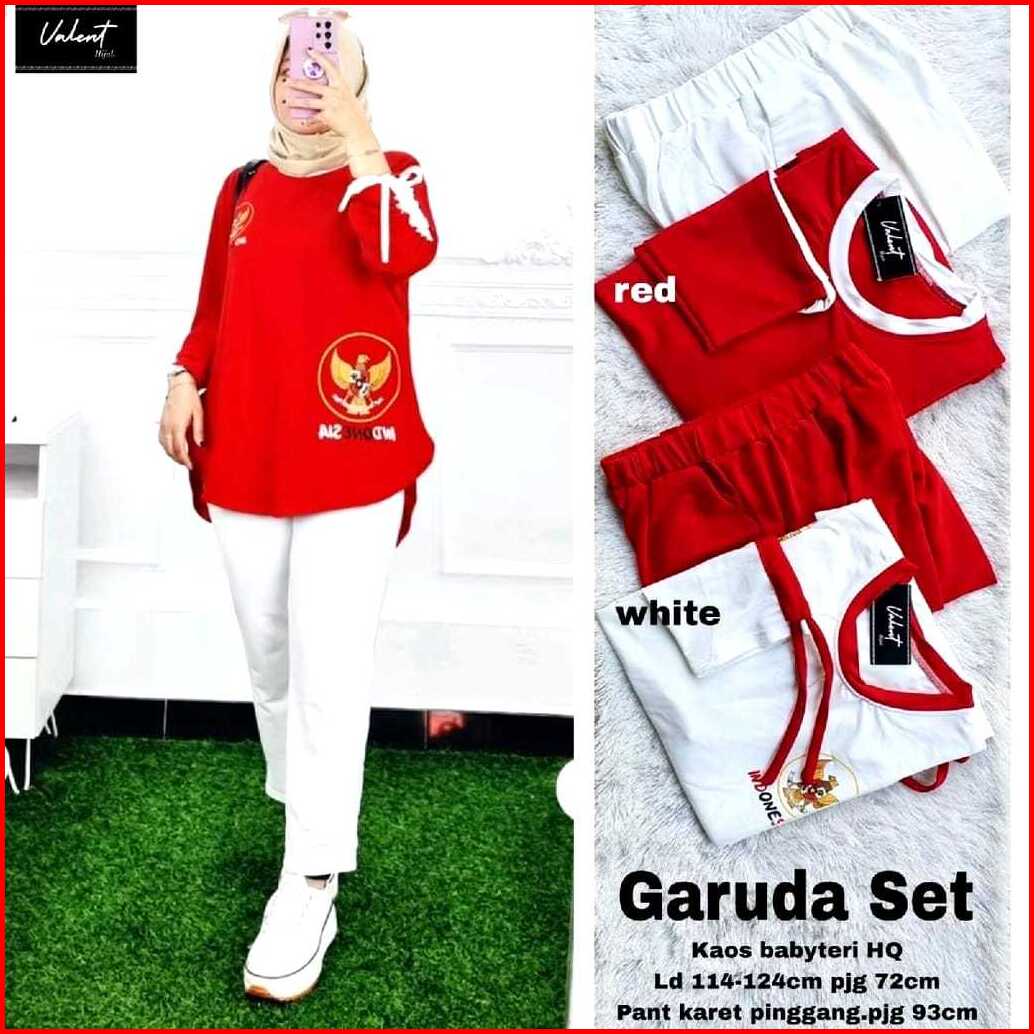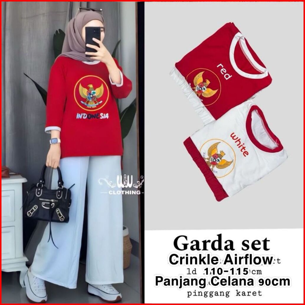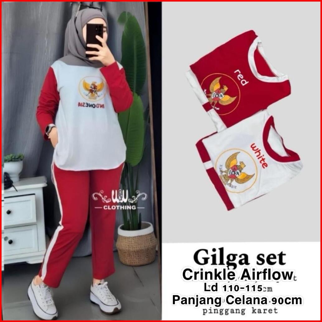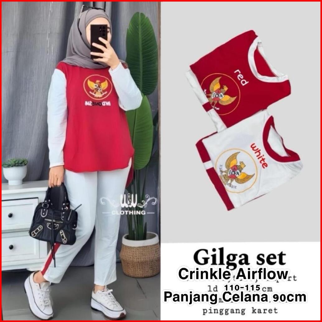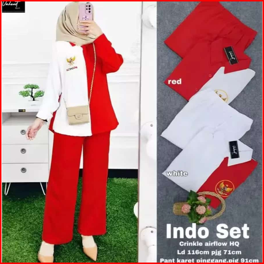 Setelan Wanita Merah Putih 17 Agustus Bahan Crinkle One Set Wanita Termurah