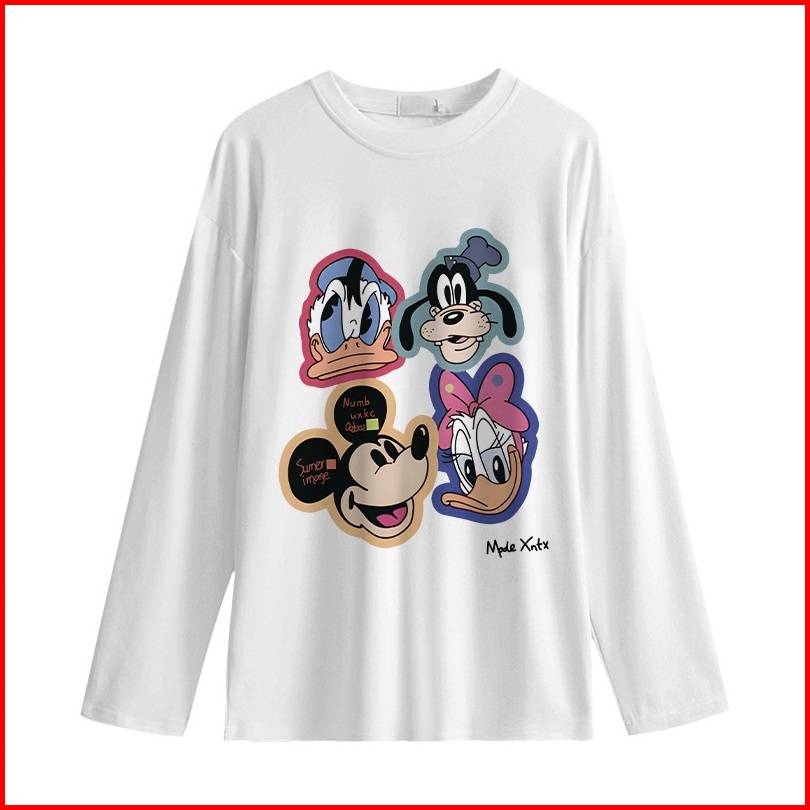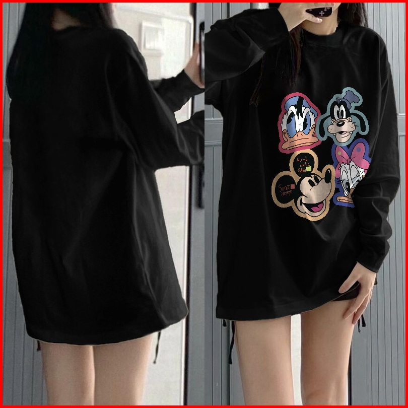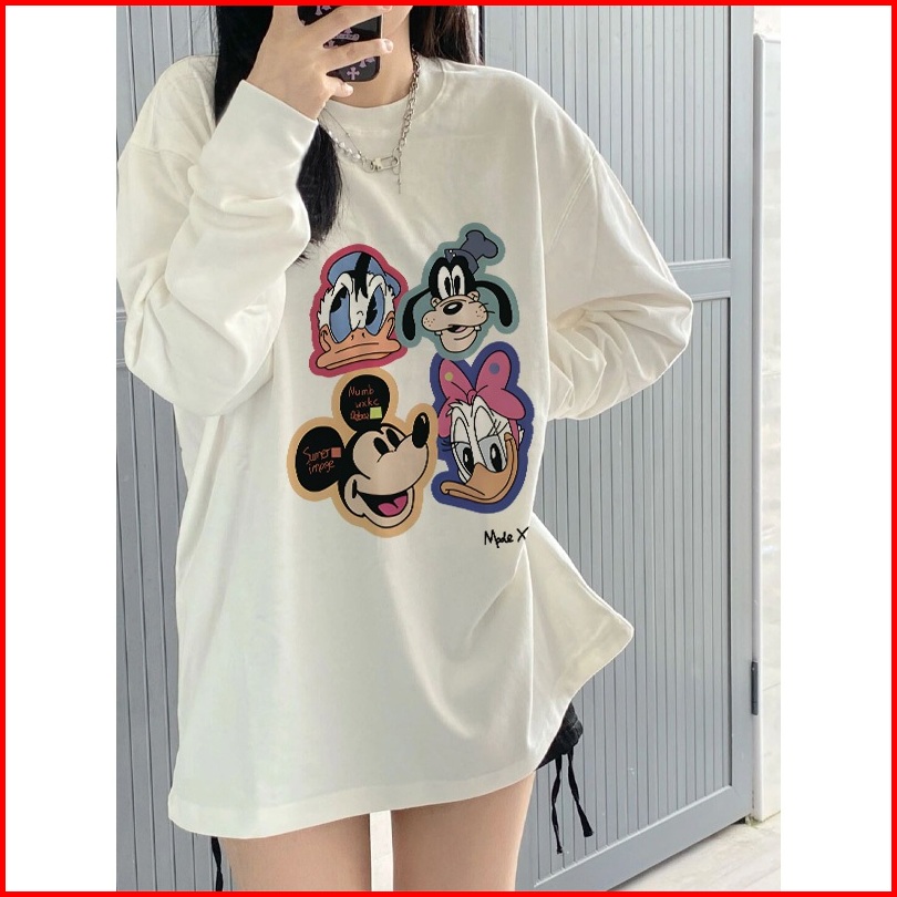 Kaos Oversize Lengan Panjang Wanita Cetakan Mickey Donald Bebek Korean Style Baju Kaos Lengan Panjang Wanita Terbaru Kek