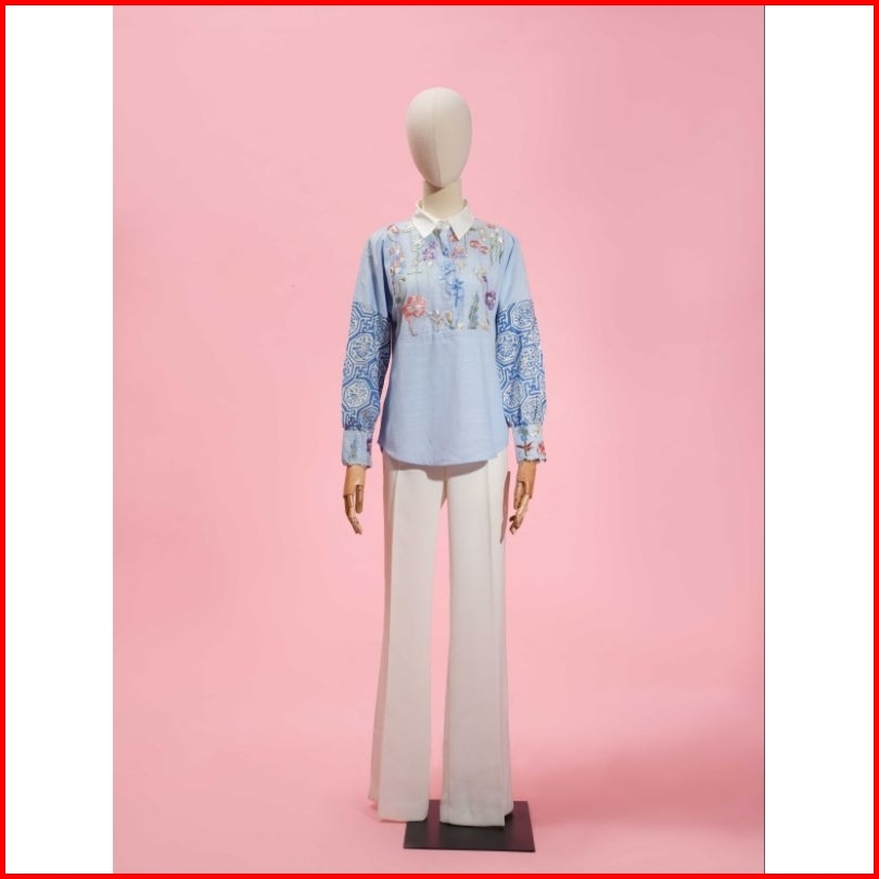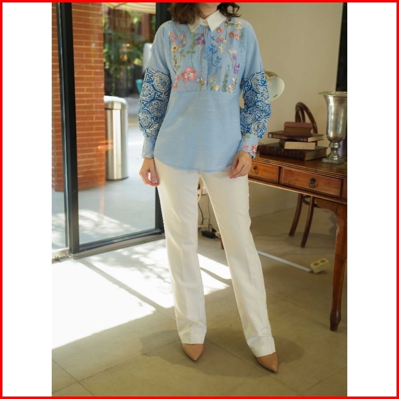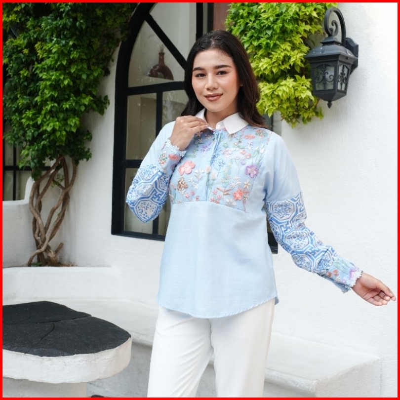 Blouse B103 New Batik Brukat Aster Biru Atasan Wanita Modern