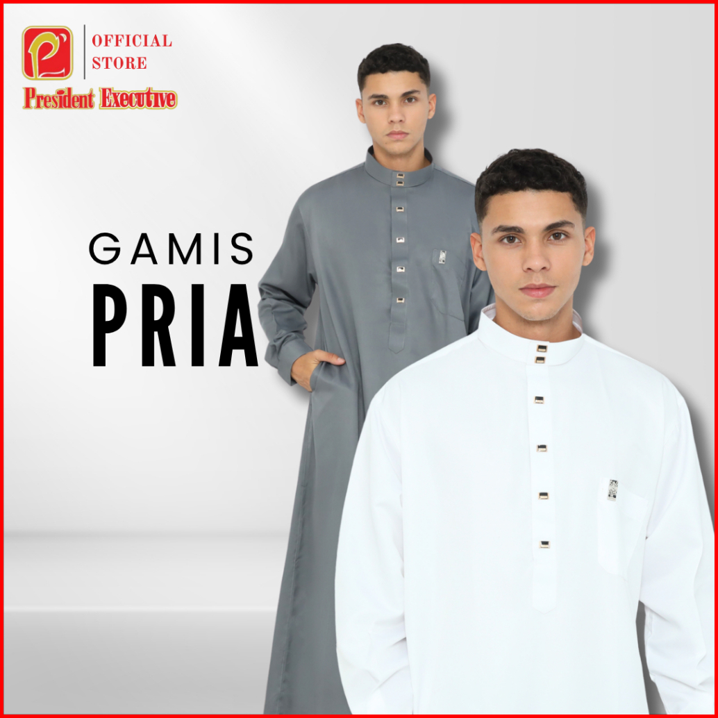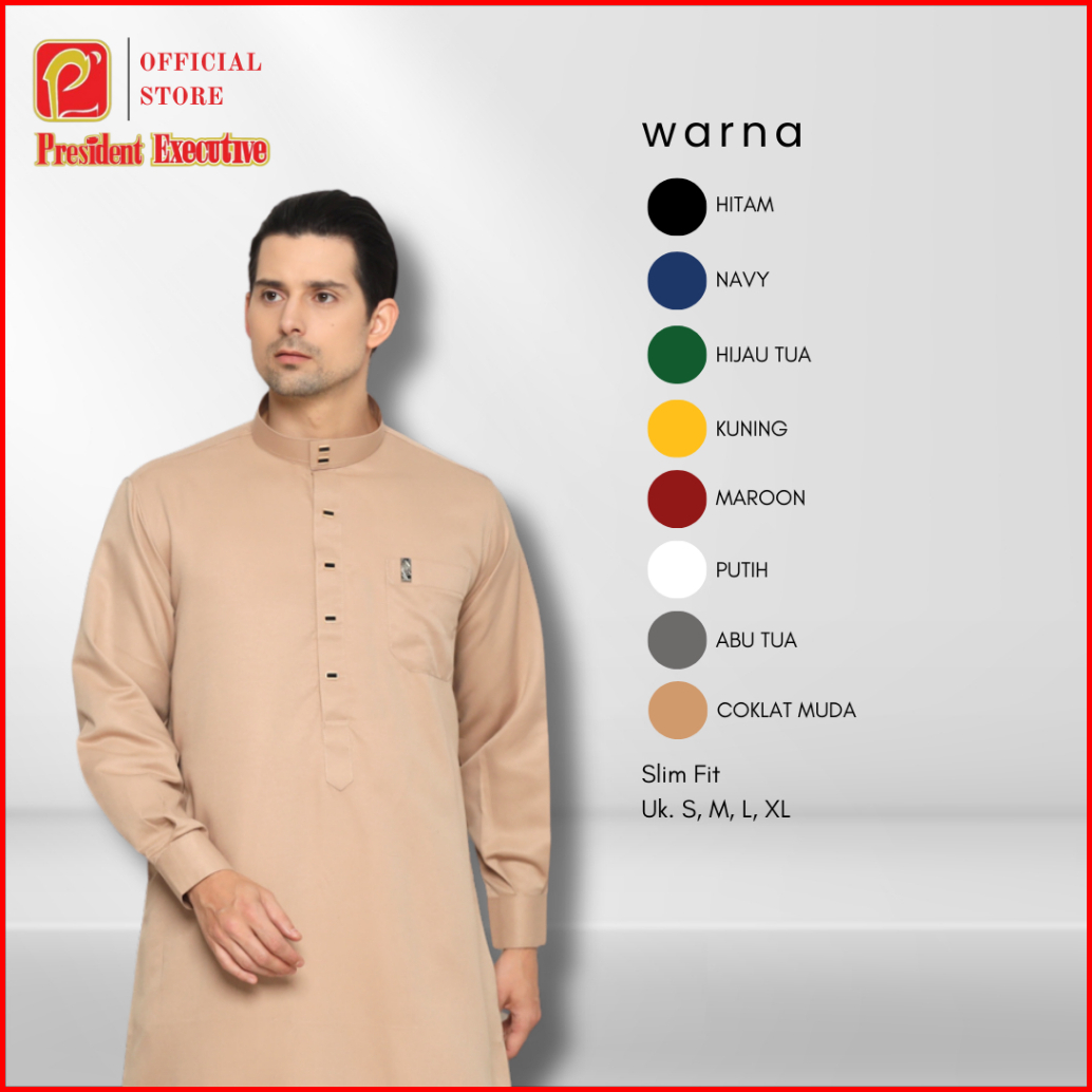 President Executive - Gamis Pria Jubah Laki Laki Polos Lengan Panjang Reguler Manset Serie Maherzain