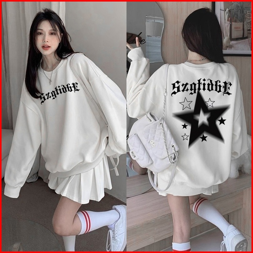 Sweater Oversize Wanita Lengan Panjang Versi Korea Cetakan Bintang Hitam Vintage Baju Sweater Wanita Korean Style Letter