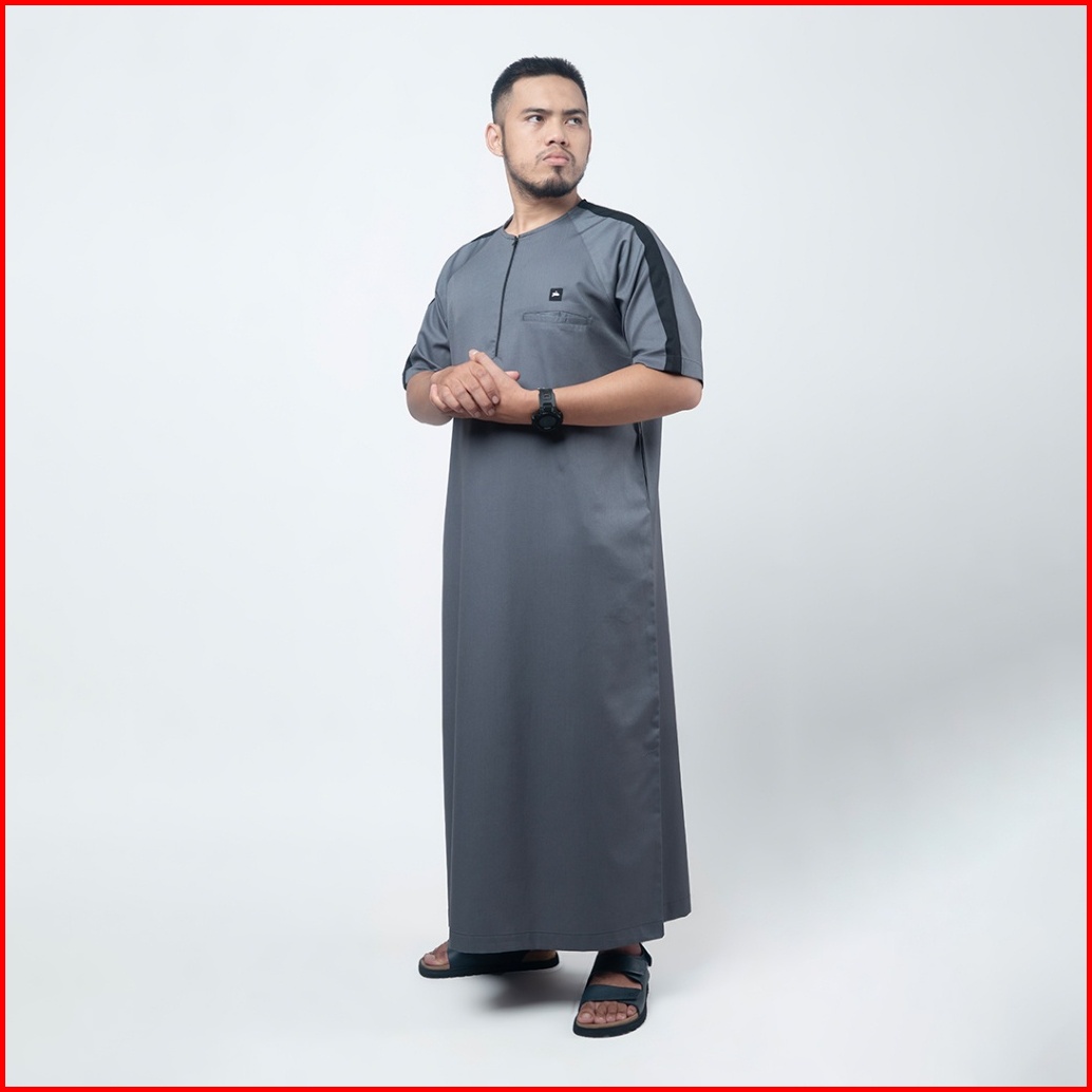 Khoirummah Jubah Ummah Dewasa - Gamis Pria Dewasa Tangan Pendek - Jubah Polos Pria - Dark Grey