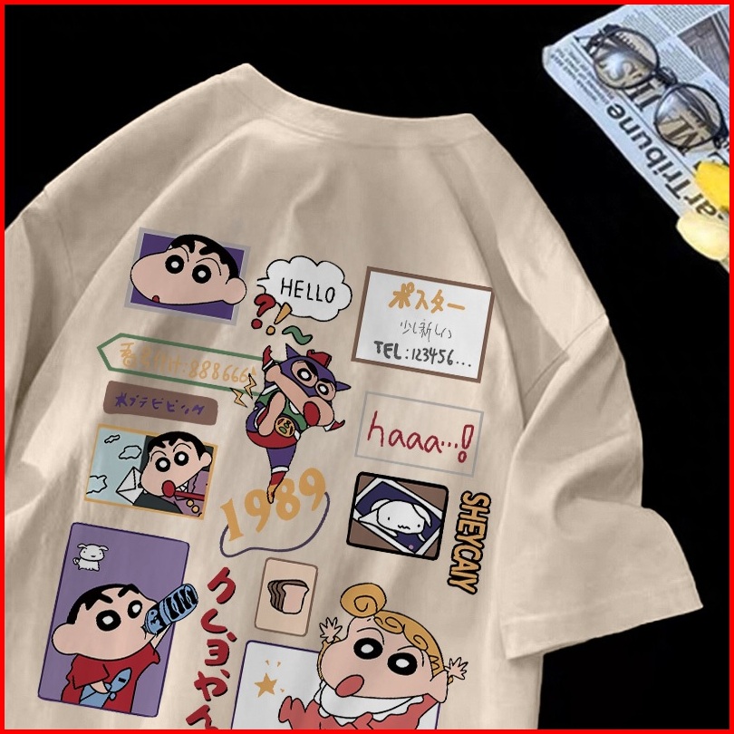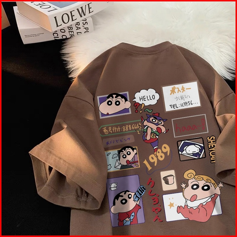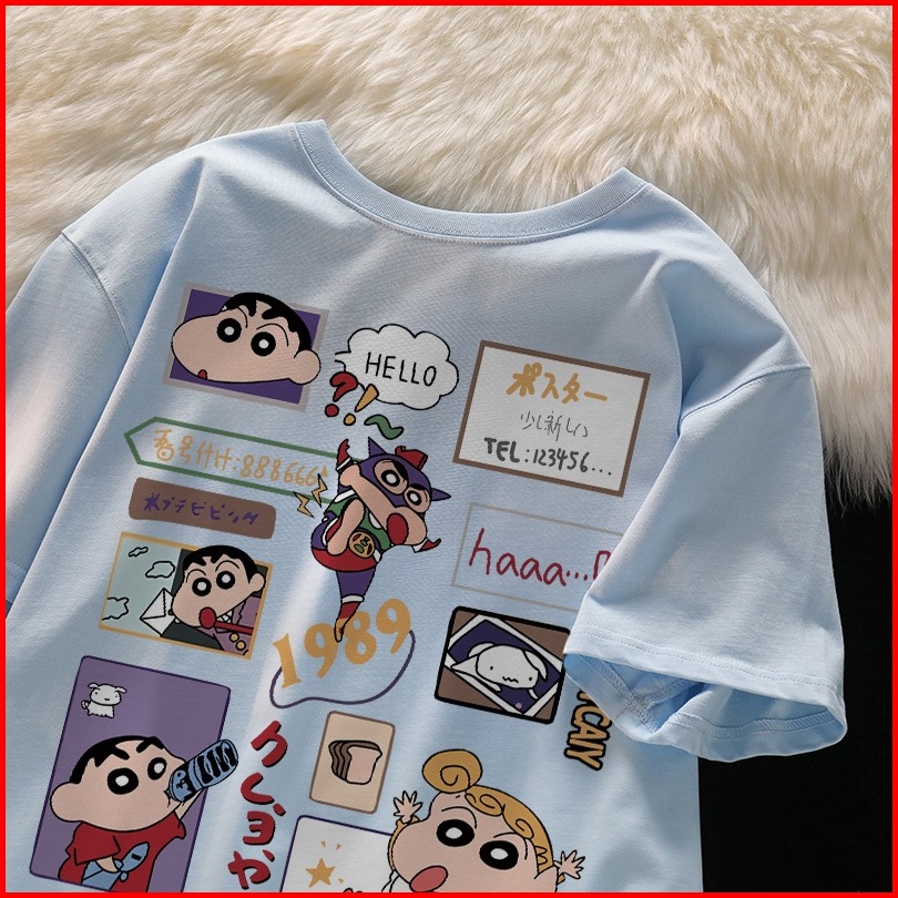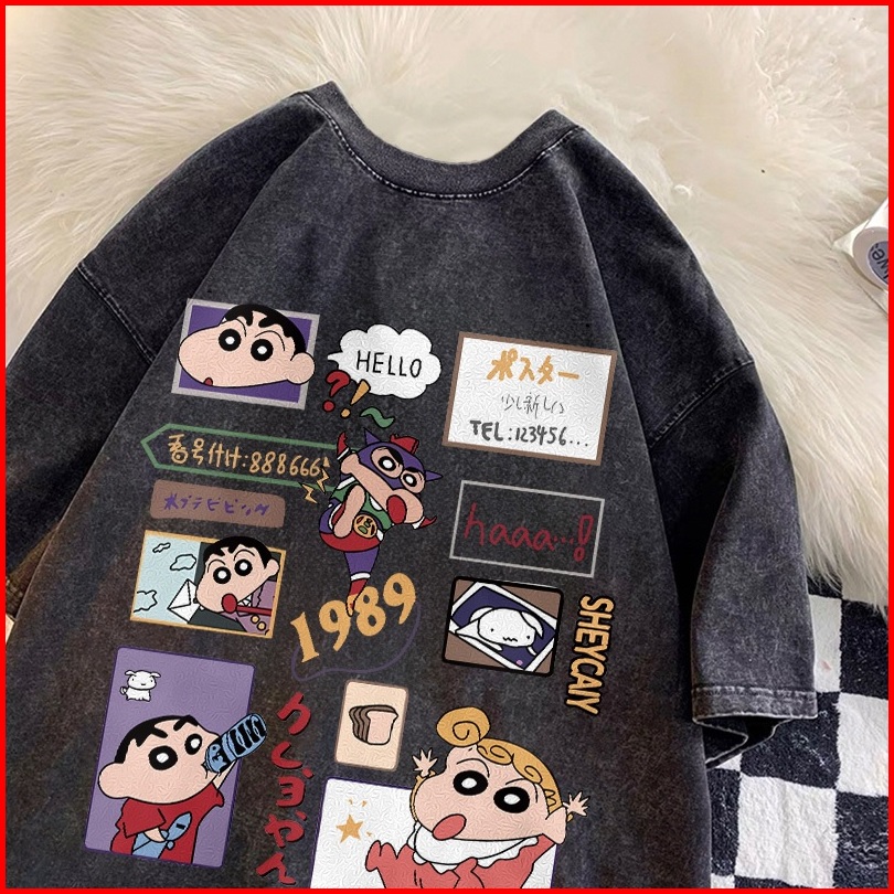 Forteid T-shirt Washed Oversize Pita Motif Gambar Crayon Shin-chan Yang Lucu Baju Atasan Lengan Pendek Wanita Kaos Overs