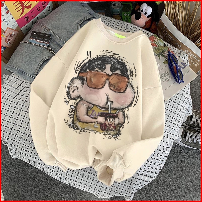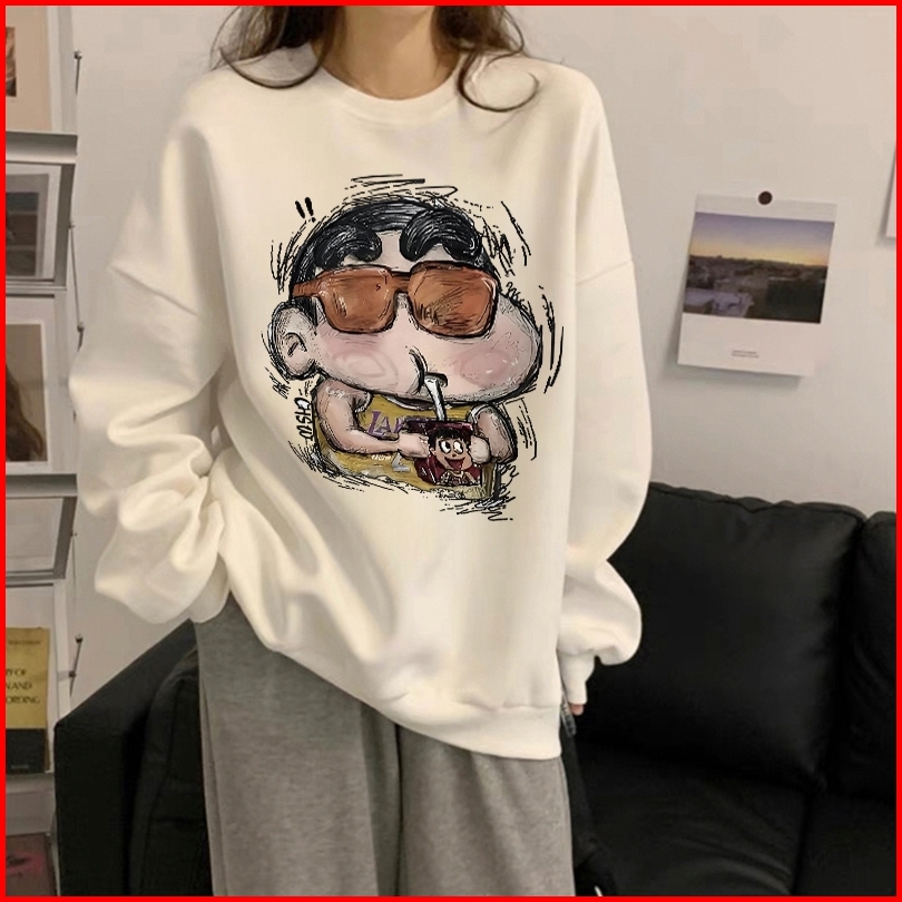 Forteid Sweater Lengan Panjang Oversized Street Style Korean Style Switer Wanita Oversize Kaos Cetakan Pola Anak-anak Ko