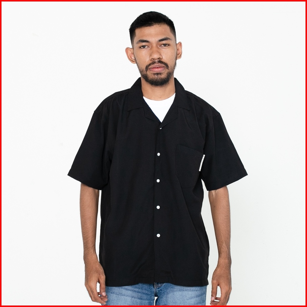 Motz Kemeja Lengan Pendek Bowling Hawaii Hitam