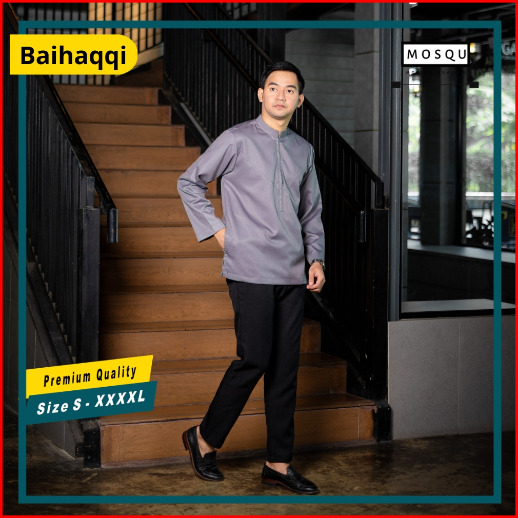 Mosqu Baju Koko Pria Dewasa Kemeja Koko Lengan Panjang Model Baihaqqi Chiangi Zipper Aksen V Stylish