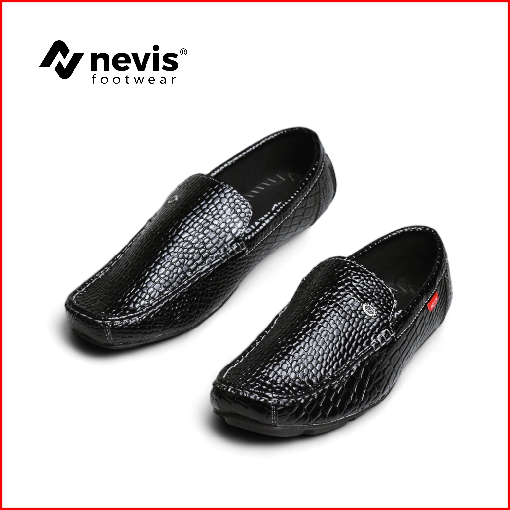 Nevis Sepatu Pria Slip On Demian Original Slop Formal Kerja Kantor Casual Hitam Coklat Tua