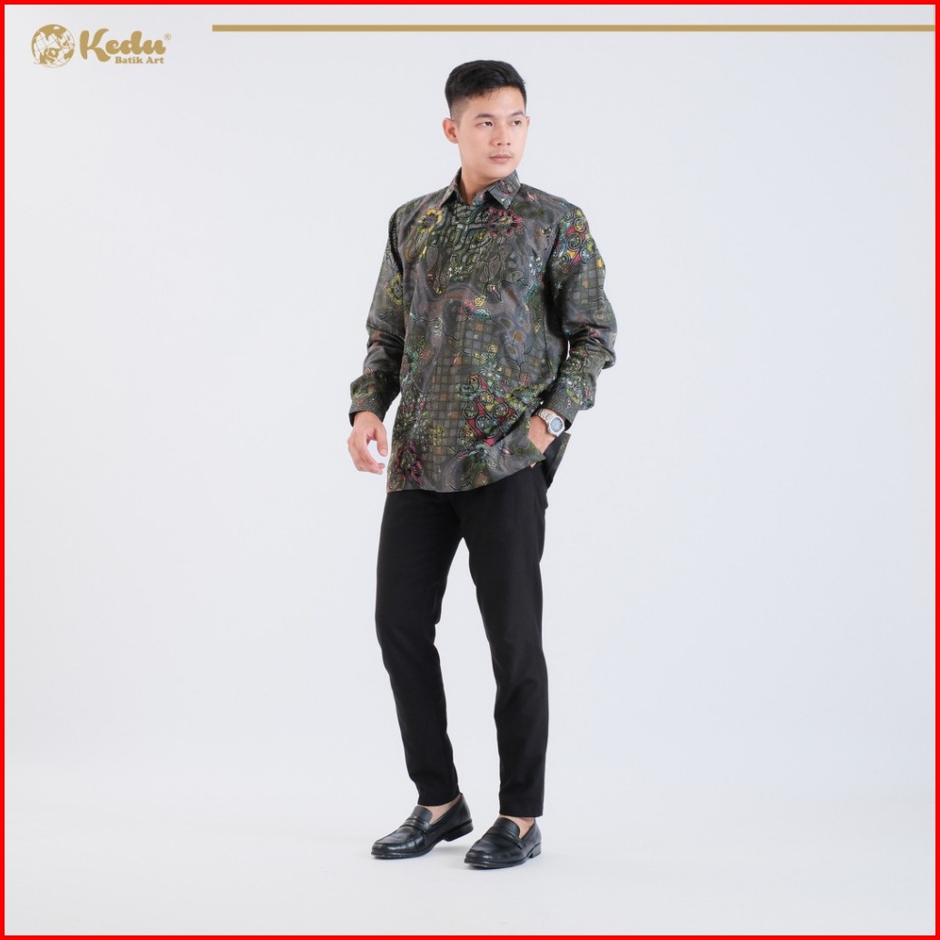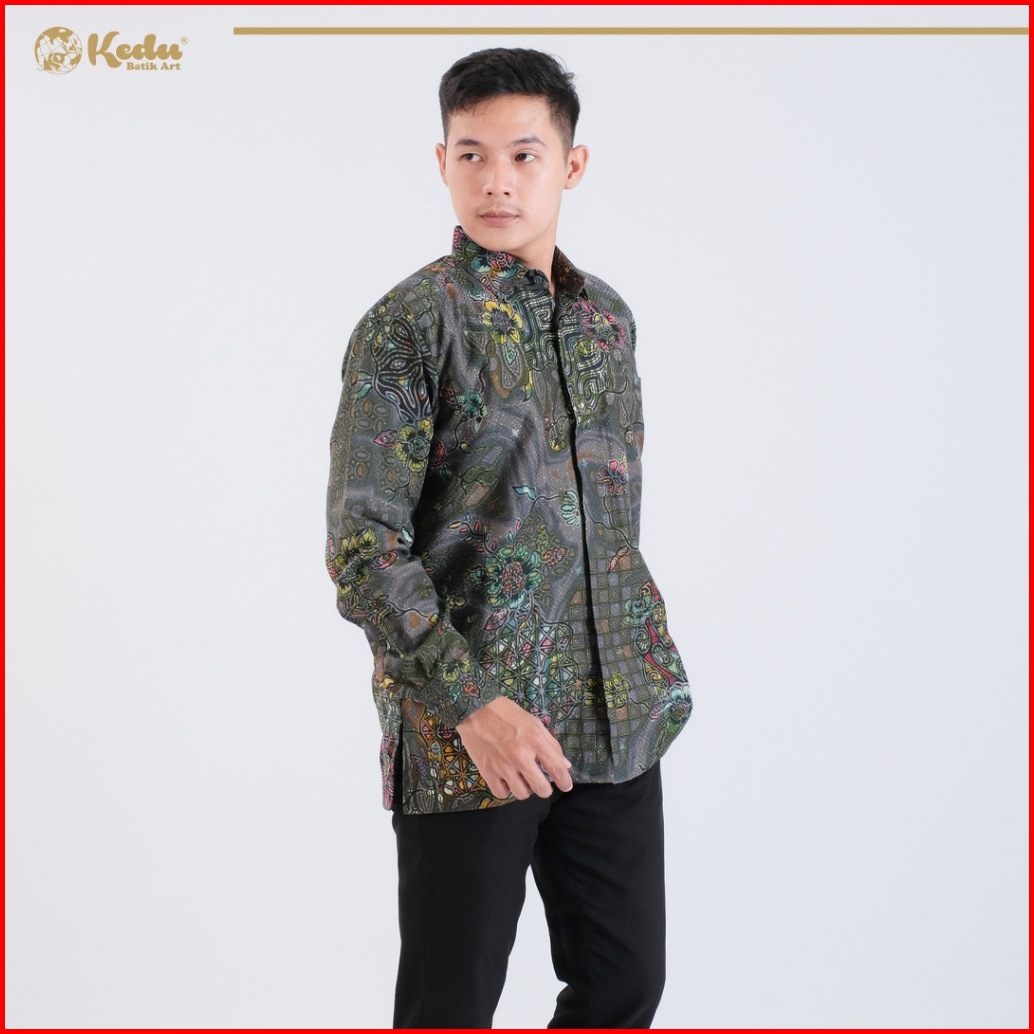 Kedu Batik - Kemeja Batik Dobby Lengan Panjang Aleea Abu