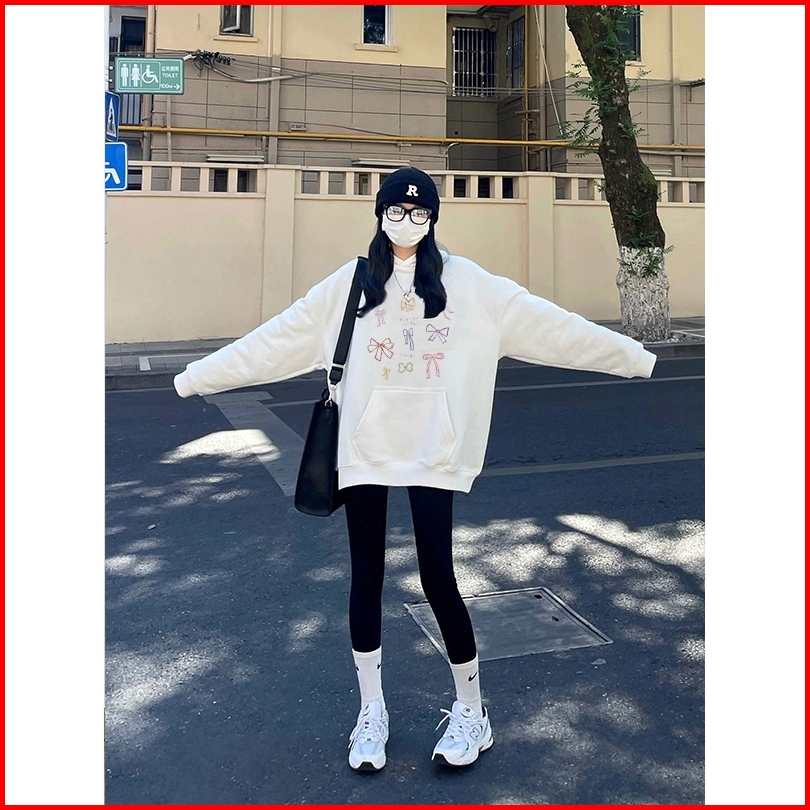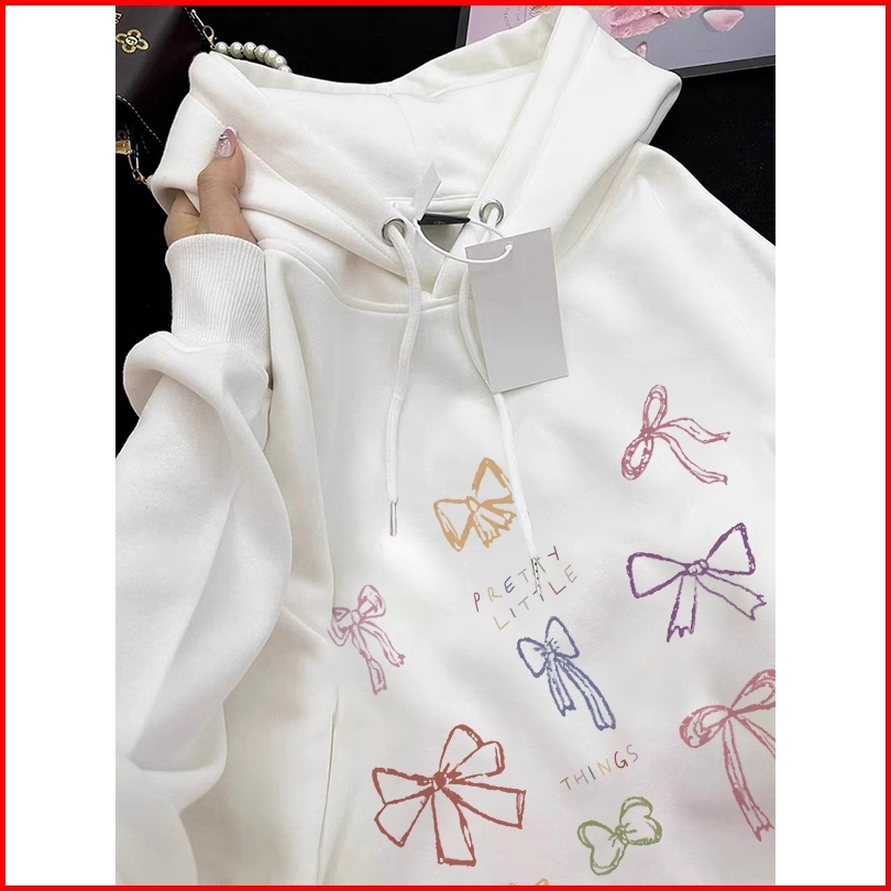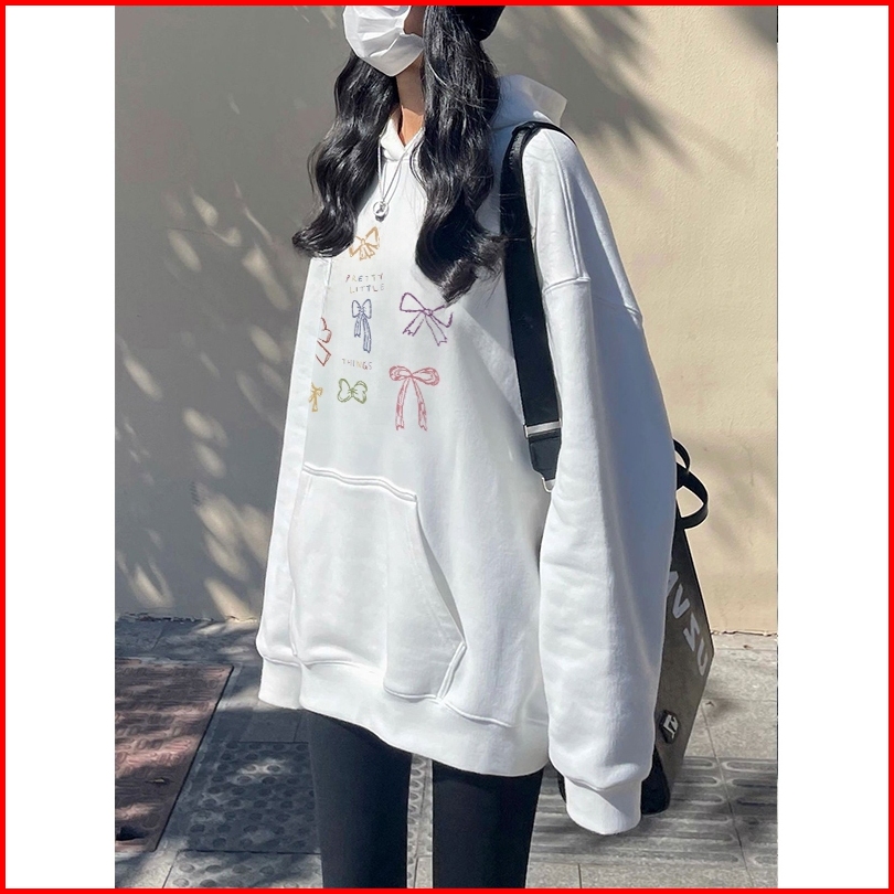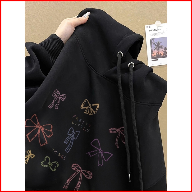 Forteid Oversize Hoodie Wanita Korean Style Oversize Hoodie Sweater Busur Warna-warni Lucu Baju Wanita Kekinian Baju Wan