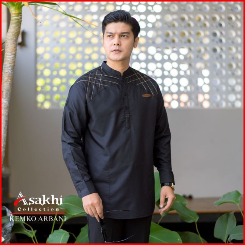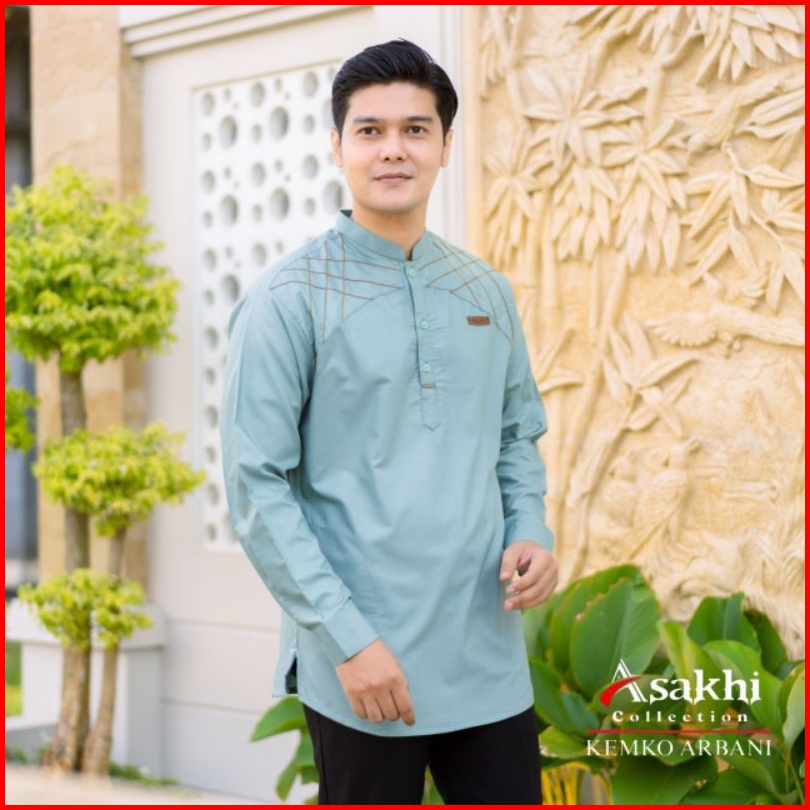 Elmoza - Baju Koko Pria Lengan Panjang Motif Arbani Series Koko Muslim Hadroh Azzahir Warna Sage M L Xl