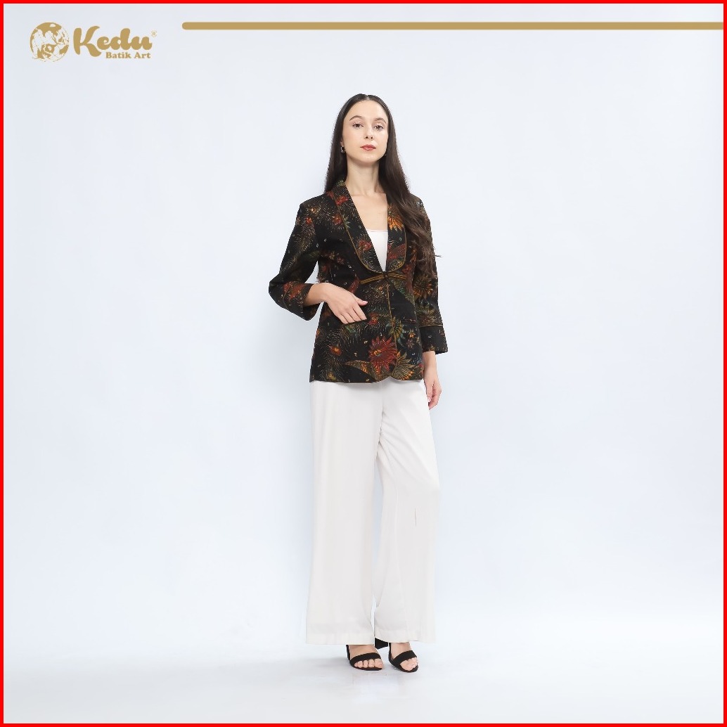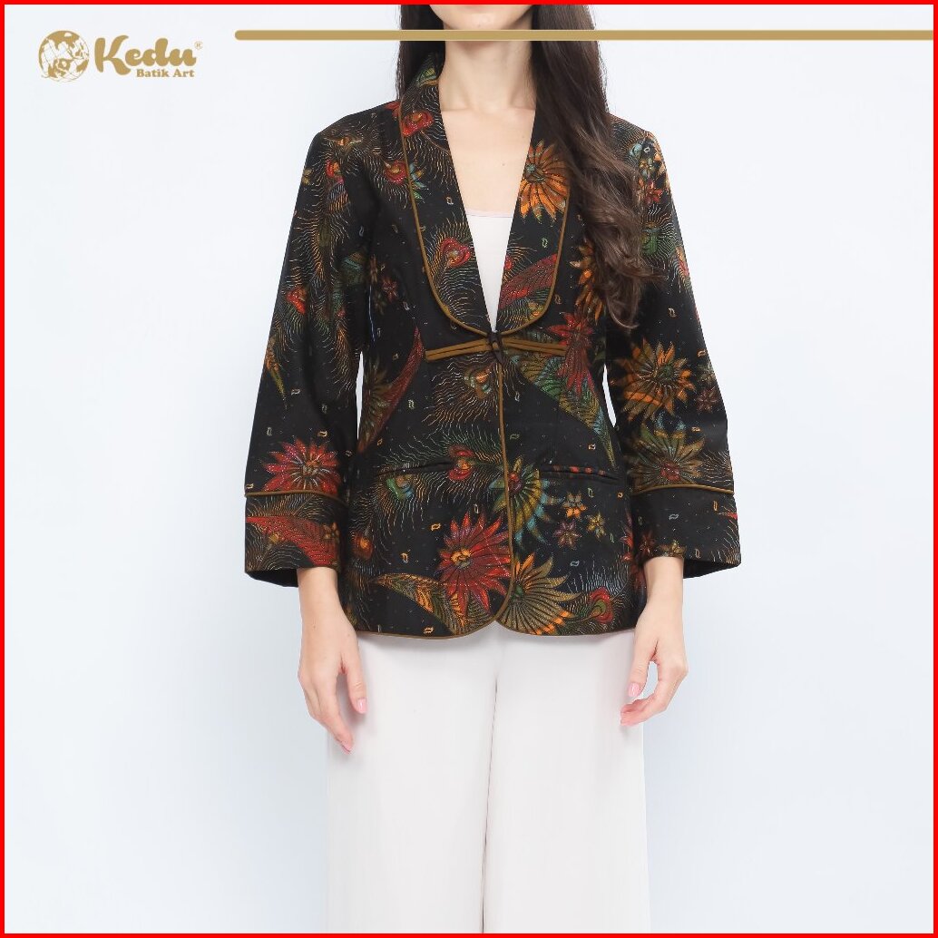 Kedu Batik Blouse Batik Wanita Katun Atara Hitam Blouse Wanita Formal