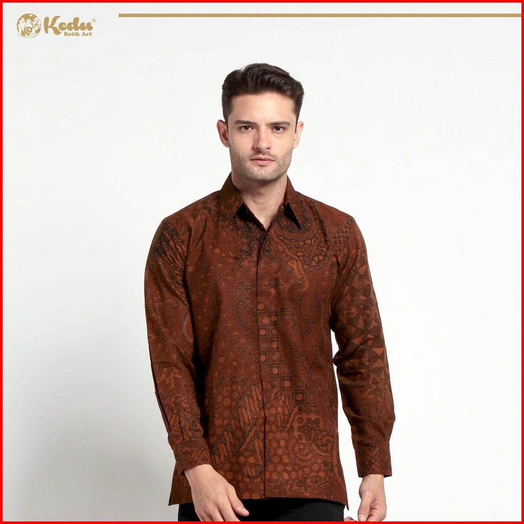 Kedu Batik - Kemeja Batik Dobby Lengan Panjang Terompet Coklat